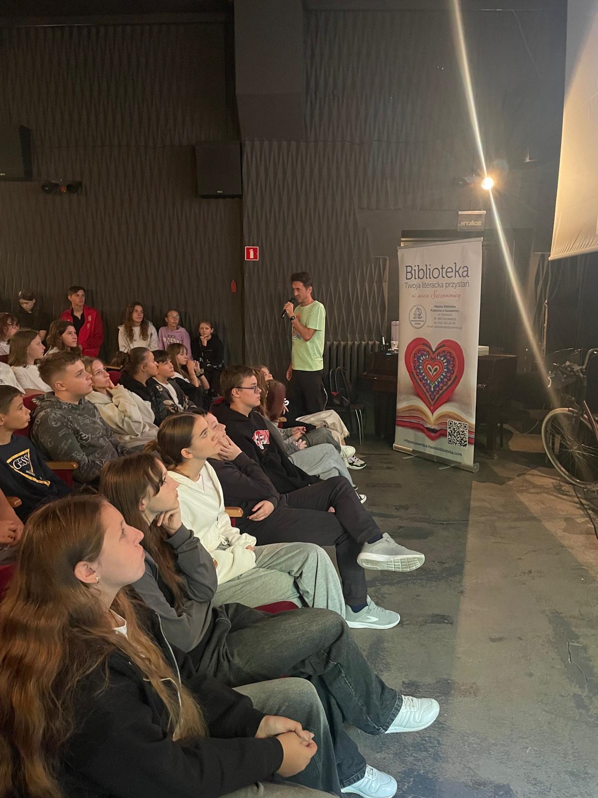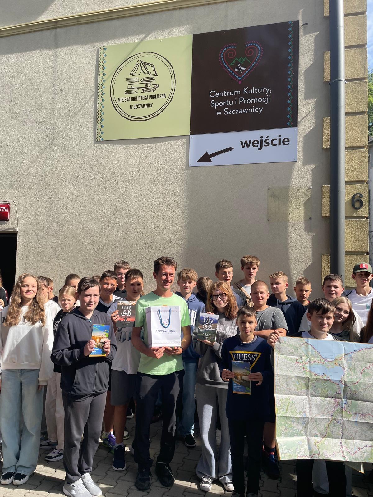 15 września uczniowie klas 7 i 8 wybrali się na zorganizowane w ramach współpracy z Biblioteką Miejską w Szczawnicy spotkanie z podróżnikiem, nauczycielem i pisarzem Danielem Kocujem - człowiekiem, który nie boi się spełniać swoich marzeń.