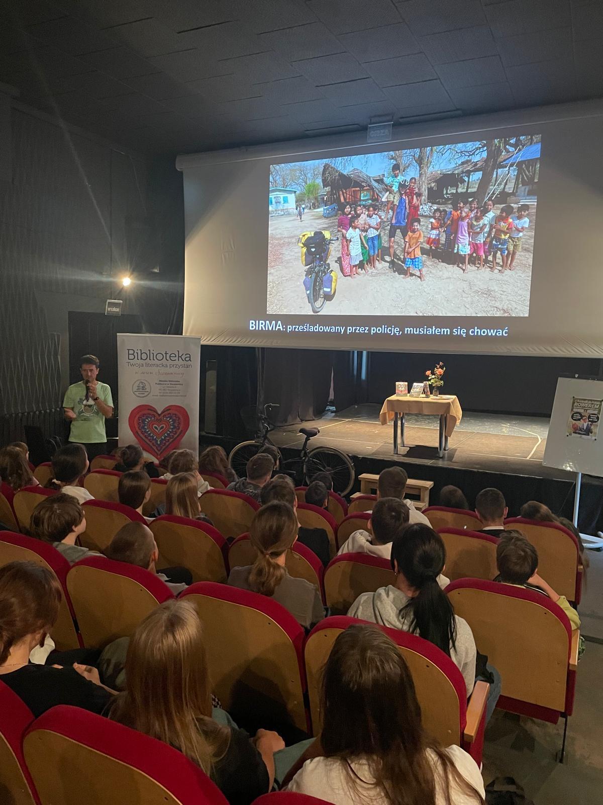 Spotkanie odbyło się w Kinoteatrze Pieniny, a na spotkanie zostały zaproszone wszystkie szkoły z naszej gminy. Pan Daniel poprowadził wyjątkowe spotkanie, podczas którego opowiadał uczniom o swojej pasji i doświadczeniach z podróży, którą zaczął w pięknej, ale też niebezpiecznej Australii i kontynuował przez wiele egzotycznych krajów Azji Południowo- Wschodniej. Podczas wyprawy poznał smak pustynnego piasku, tropikalnych monsunów i śniegu w Himalajach. Słuchał szamanów, spał w klasztorach, przeżył kilka burz (dosłownie i w przenośni). Po spotkaniu młodzież miała okazję zadać podróżnikowi wiele pytań, a na końcu przyszedł też czas na wspólne fotografie.