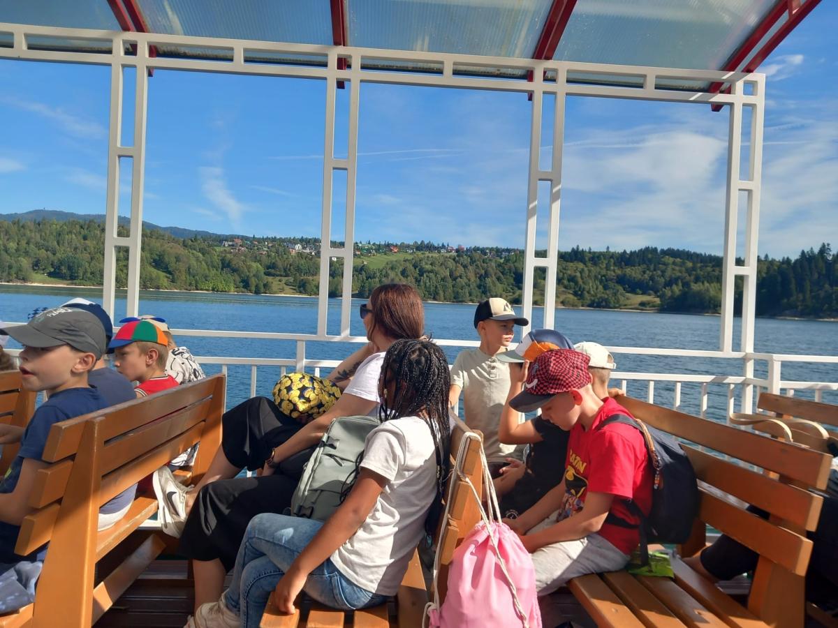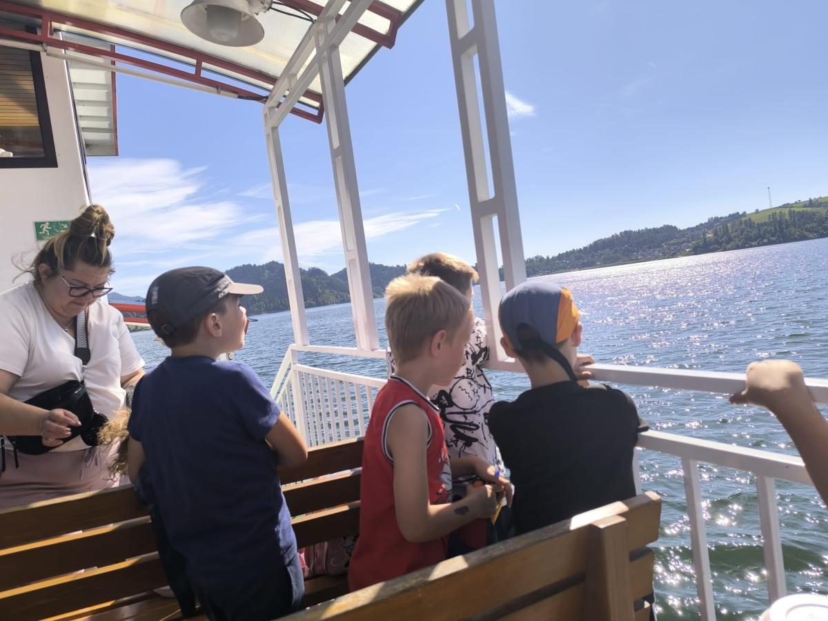 Kolejną atrakcją był rejs statkiem po Jeziorze Czorsztyńskim. Z pokładu uczniowie podziwiali zapierające dech w piersiach widoki na góry, zamek oraz okoliczną przyrodę. Następnie cała grupa udała się na spacer po zaporze, skąd rozciągała się wspaniała panorama jeziora i Pienin.