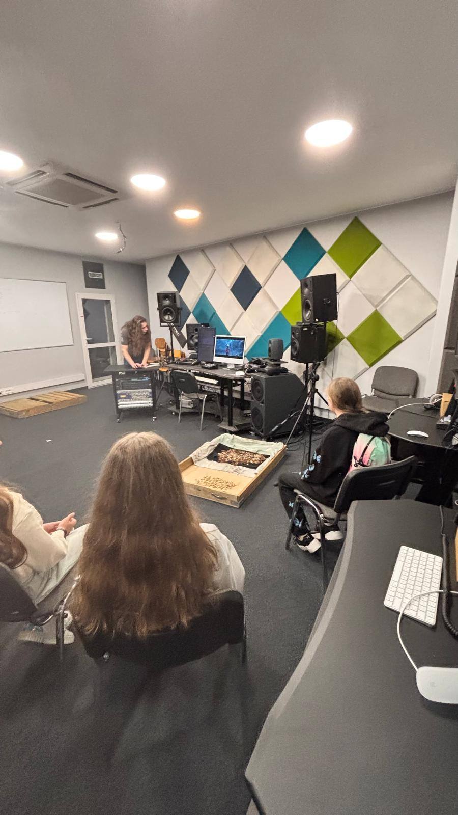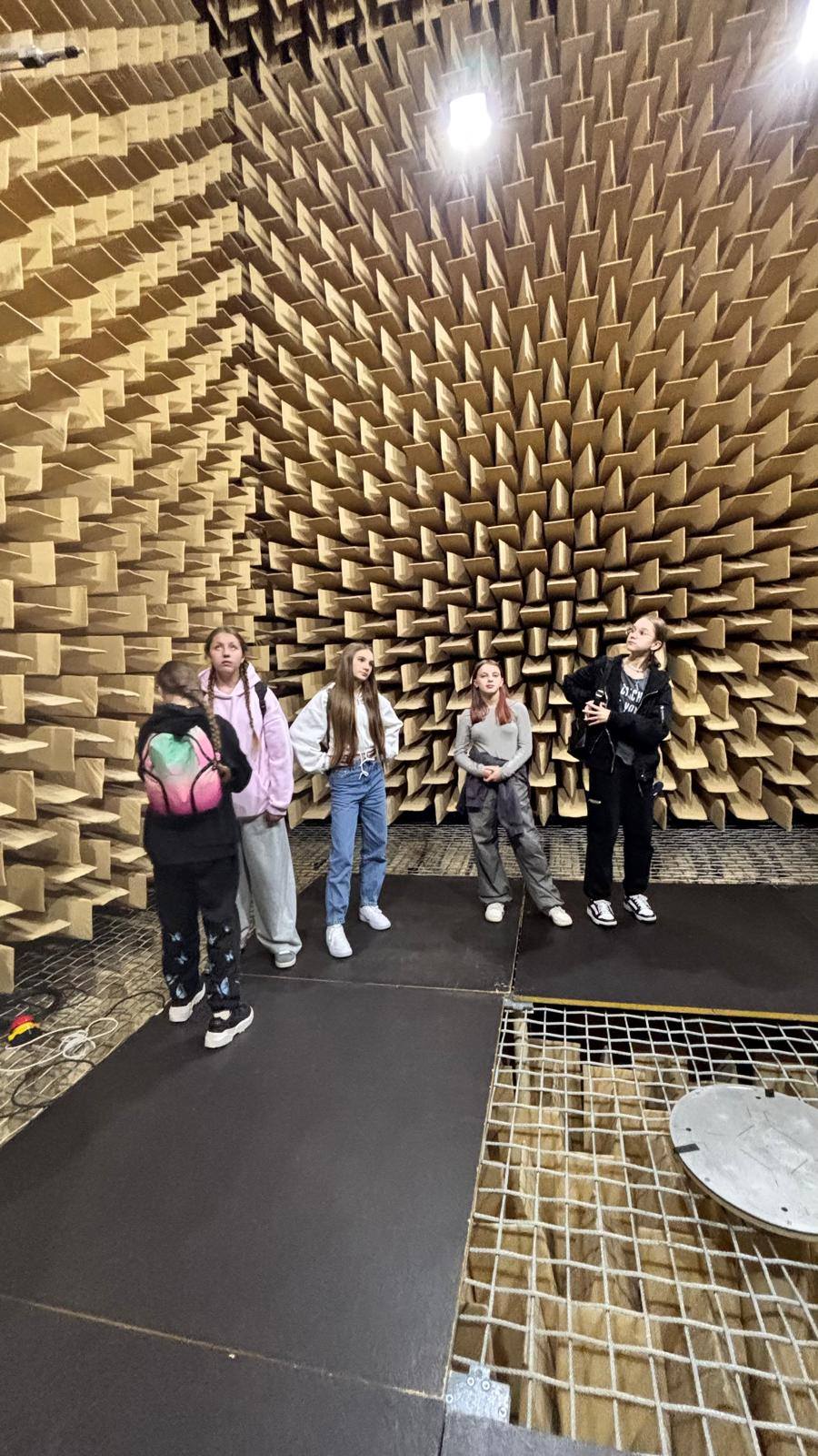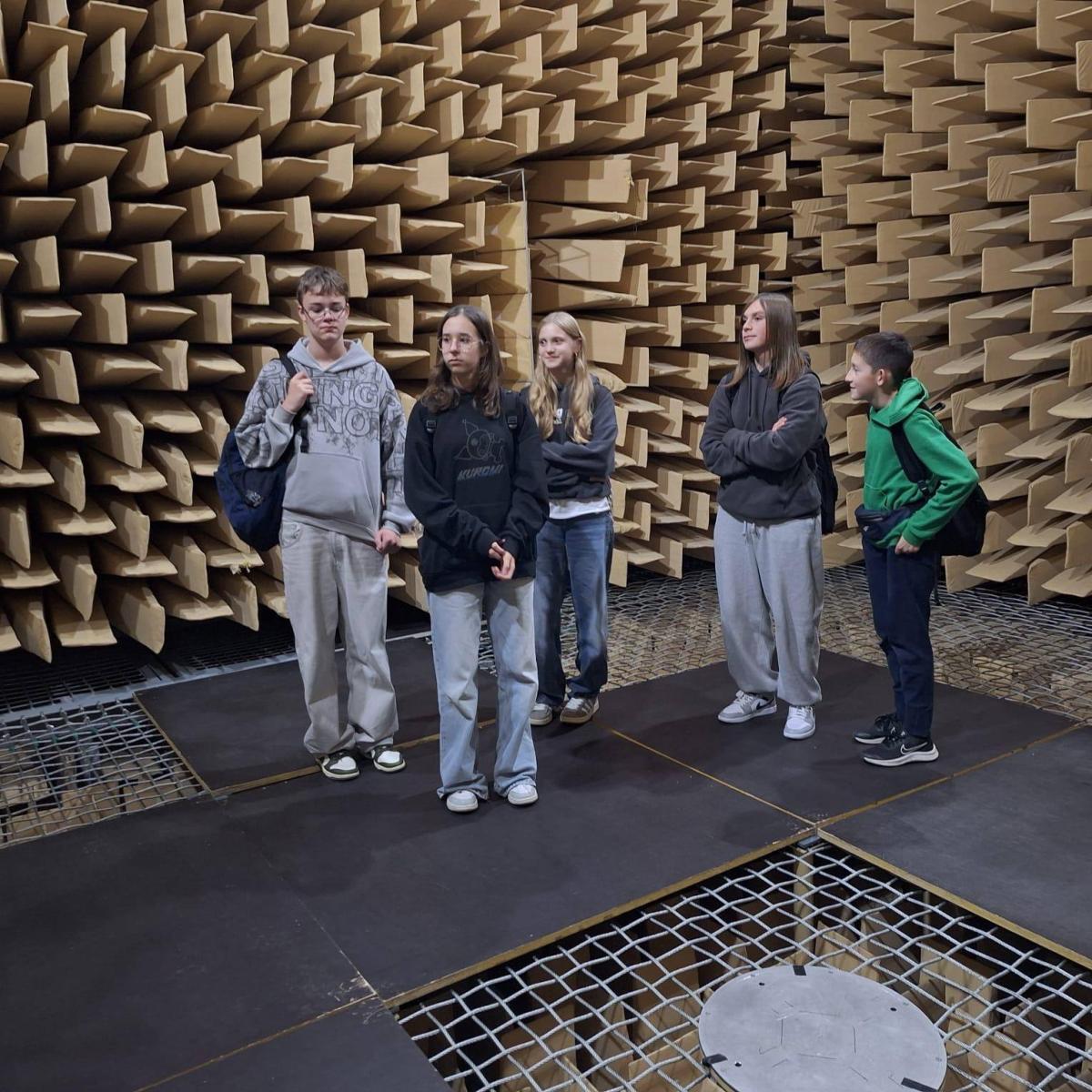 Dużym zainteresowaniem cieszył się pokaz wyładowań w laboratorium wysokich napięć, który dostarczył nie tylko wiedzy, ale i niezapomnianych wrażeń wizualnych i dźwiękowych. Nasi uczniowie mieli również możliwość wejścia do komory bezechowej, odwiedzenia studia nagrań oraz laboratorium akustyki technicznej, gdzie poznali tajniki dźwięku i ciszy absolutnej.