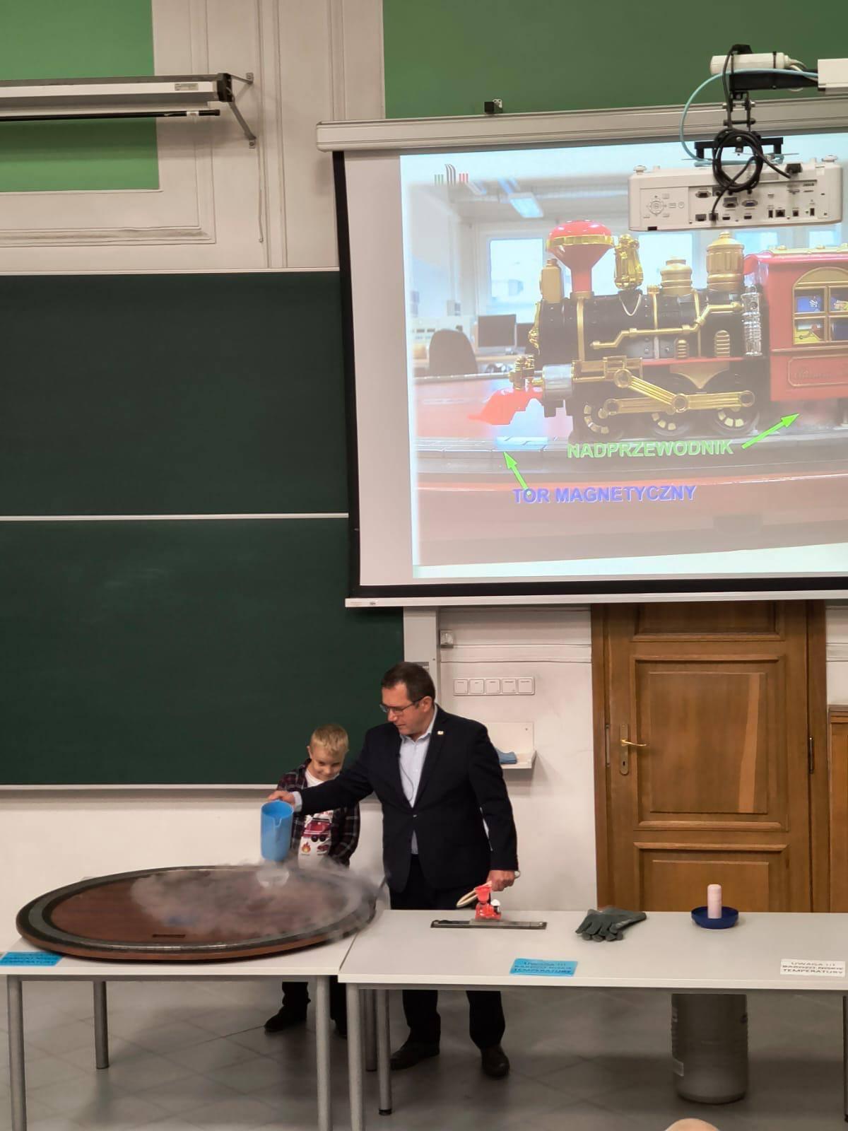 Jednym z najbardziej spektakularnych punktów programu był pokaz z użyciem ciekłego azotu, podczas którego nastąpił efektowny wybuch w 30-litrowej beczce. Z kolei wykład dotyczący lewitacji w ekstremalnie niskich temperaturach pozwolił zrozumieć, jak niezwykłe zjawiska fizyczne można zaobserwować dzięki zastosowaniu nowoczesnych technologii.