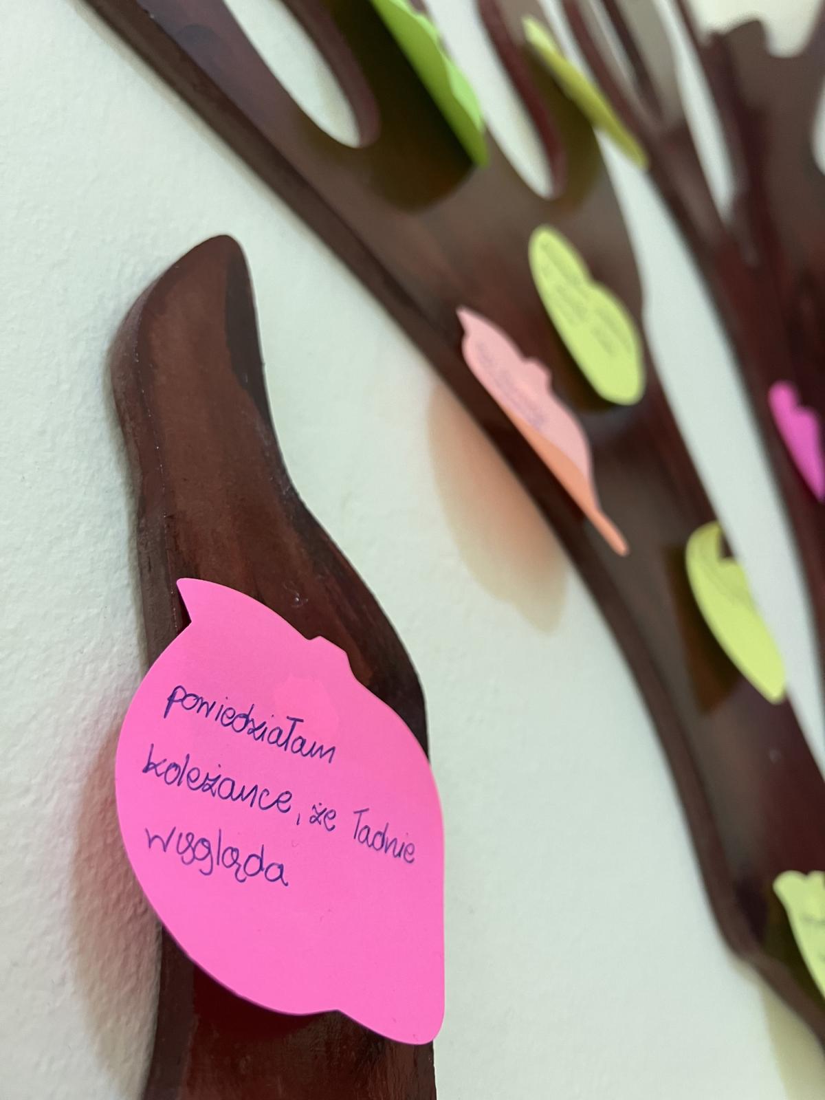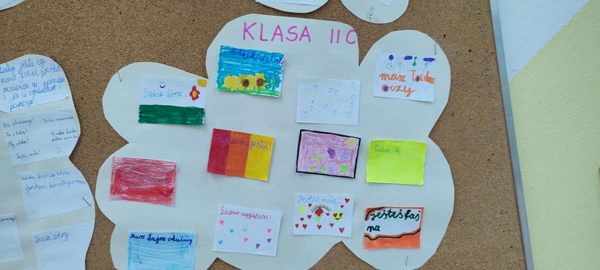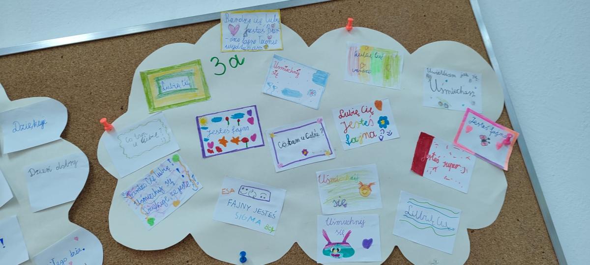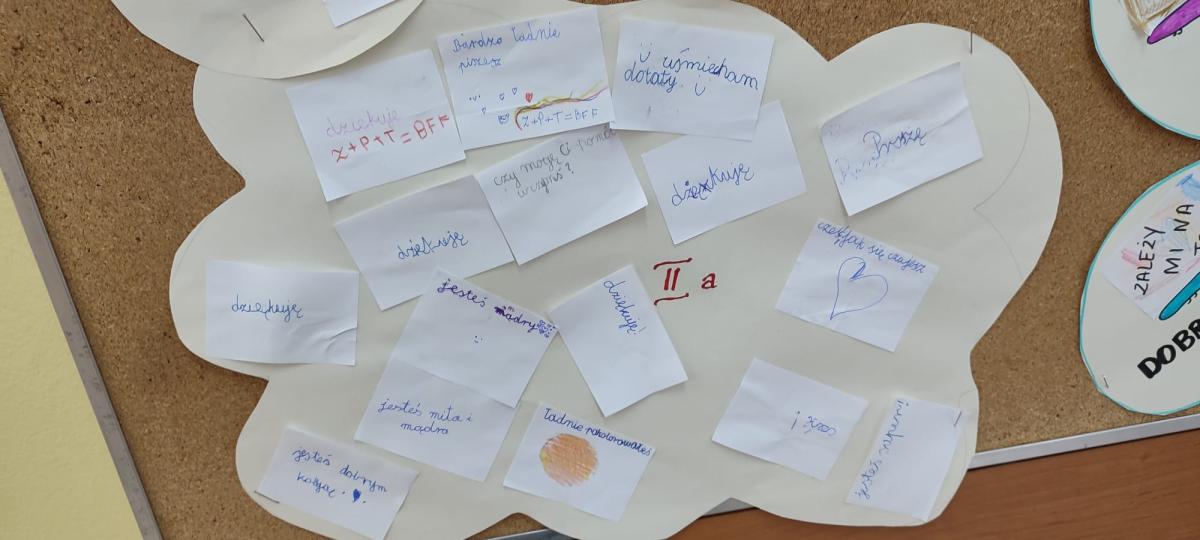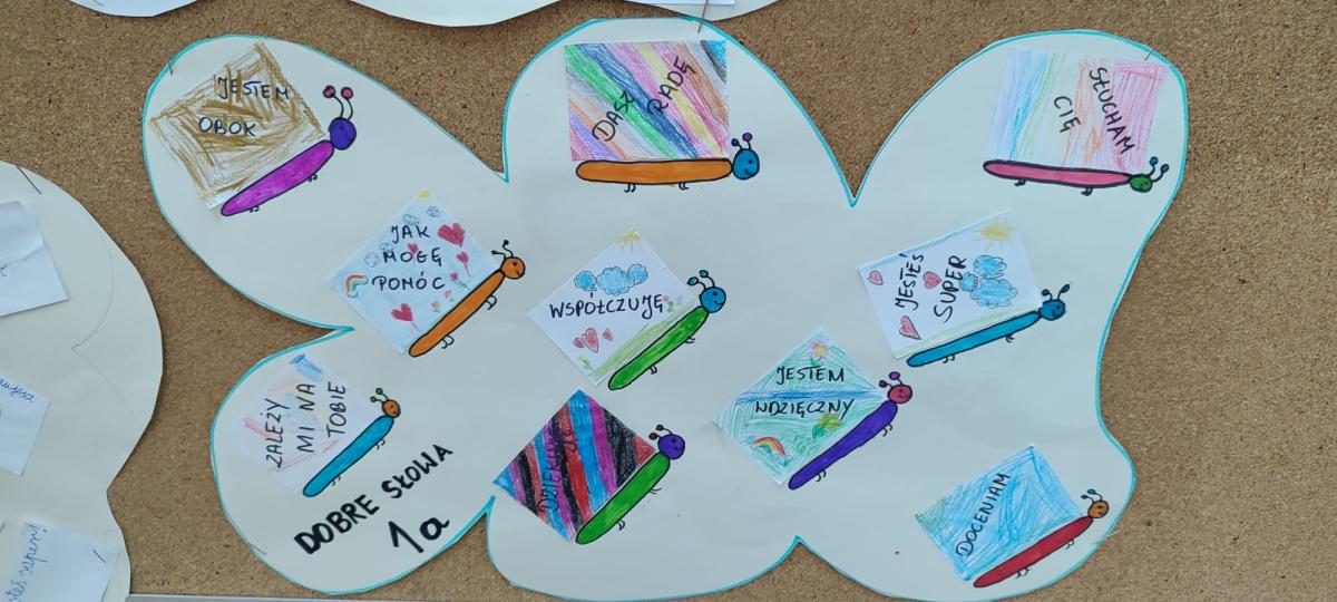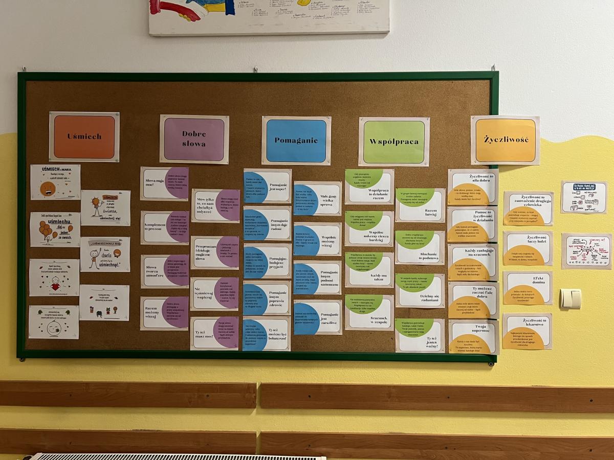 Wychowawcy przeprowadzili rozmowy podsumowujące – uczniowie dzielili się refleksjami, tym co ich poruszyło i co zapadło im w pamięć z minionego tygodnia. Powstały także gazetki klasowe na temat przeciwdziałania przemocy i budowania relacji.