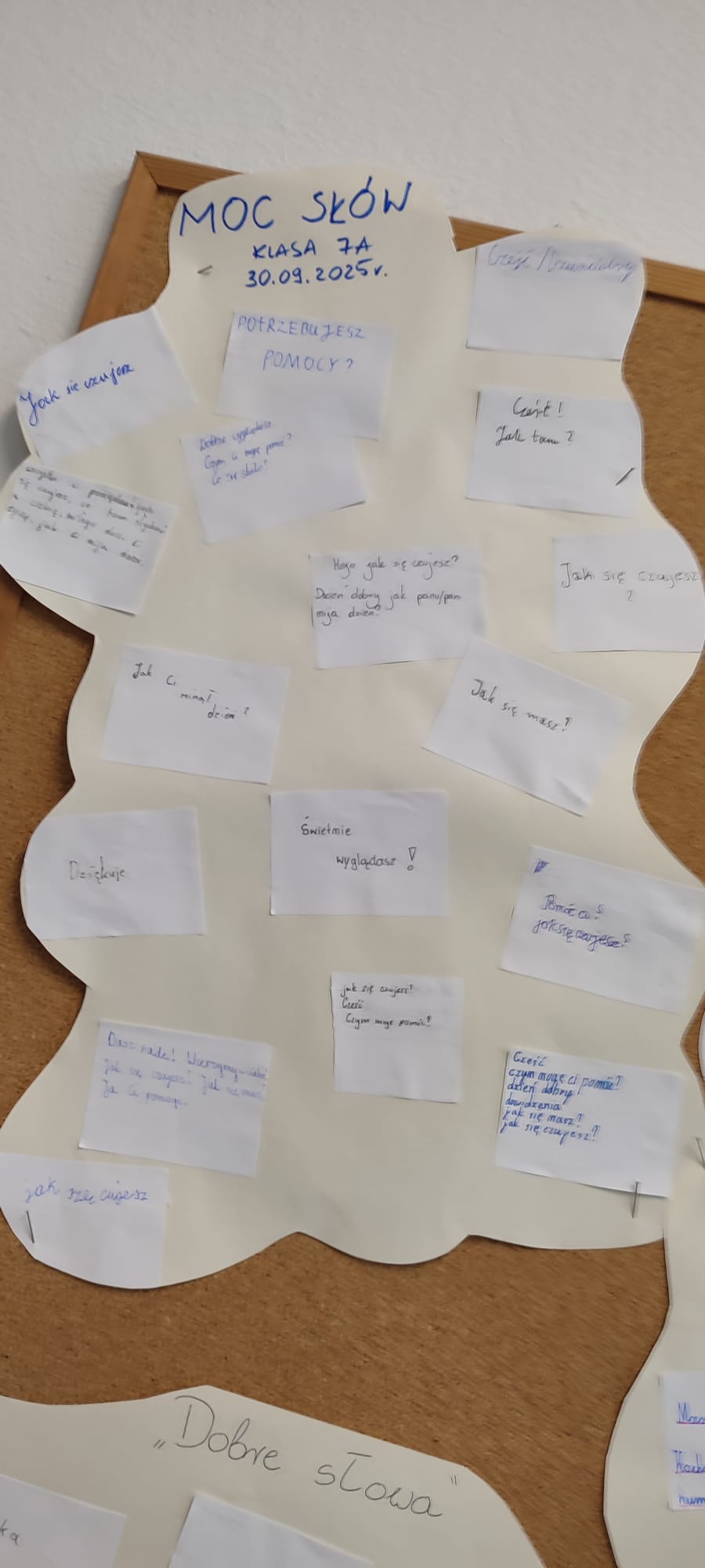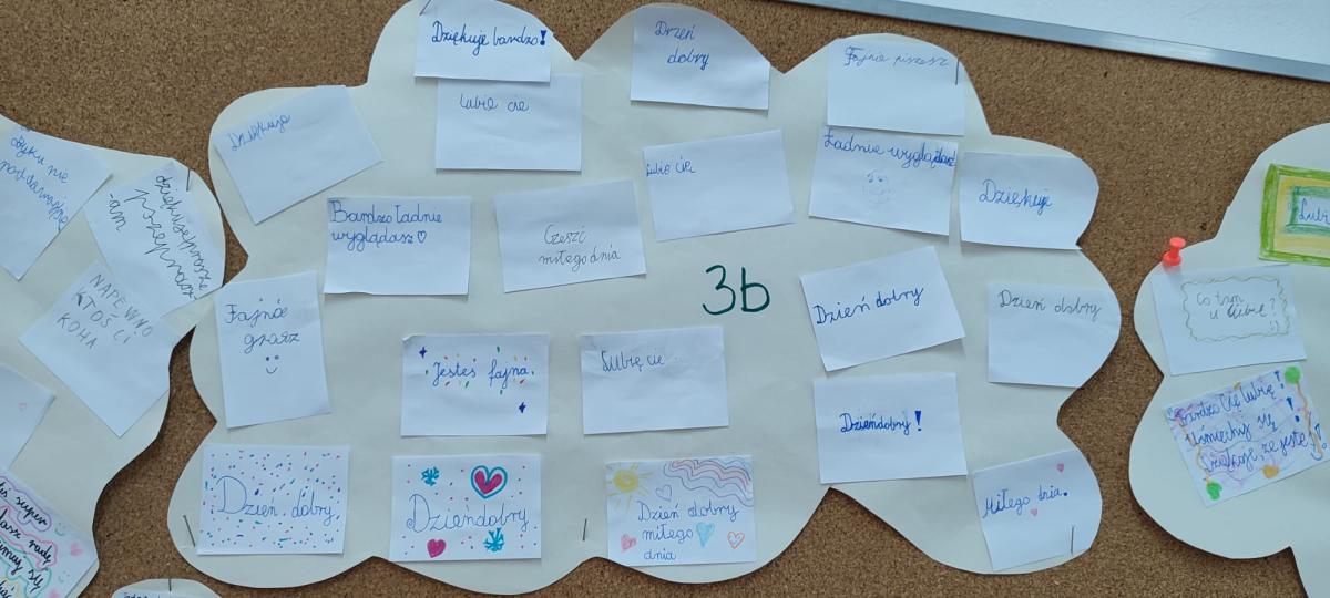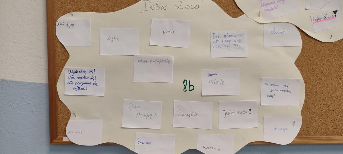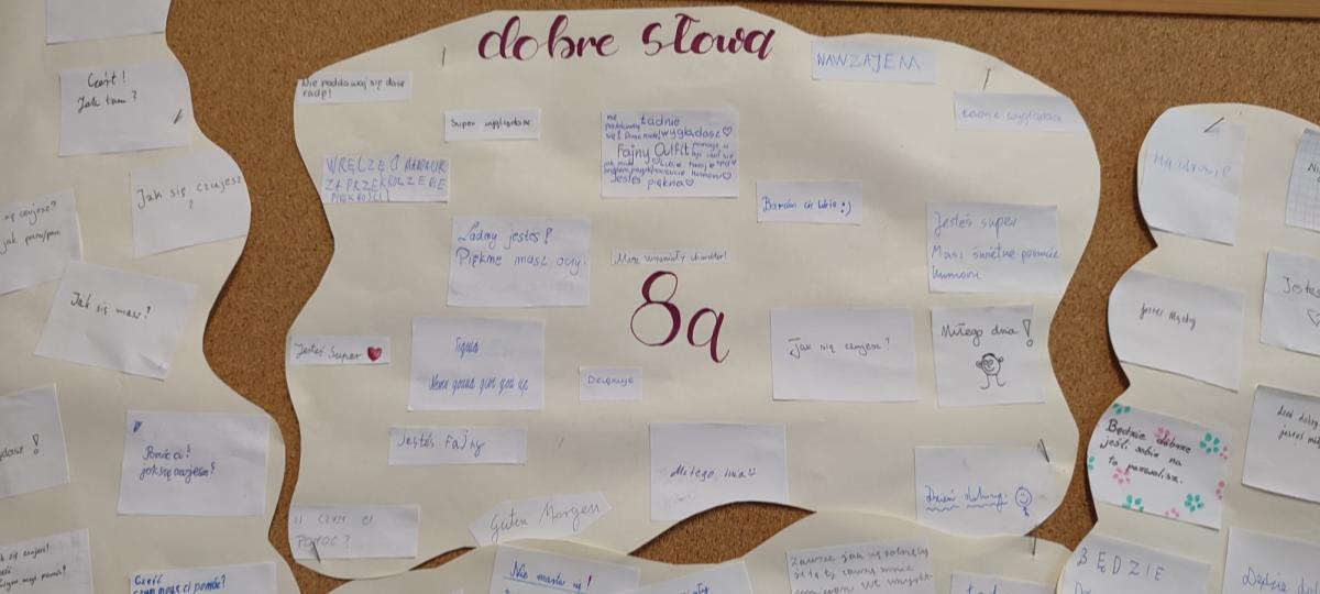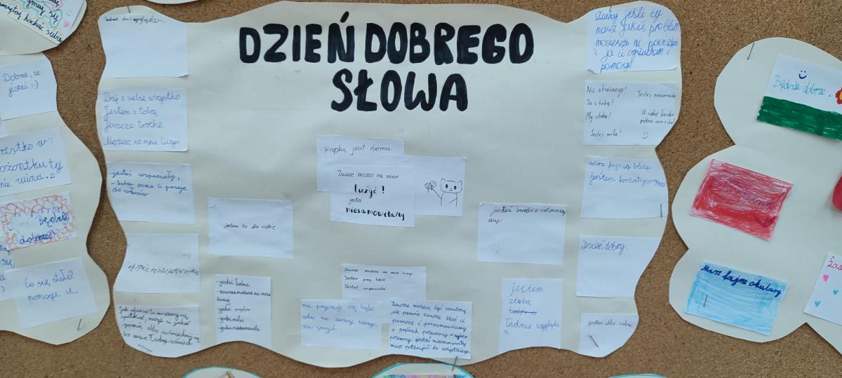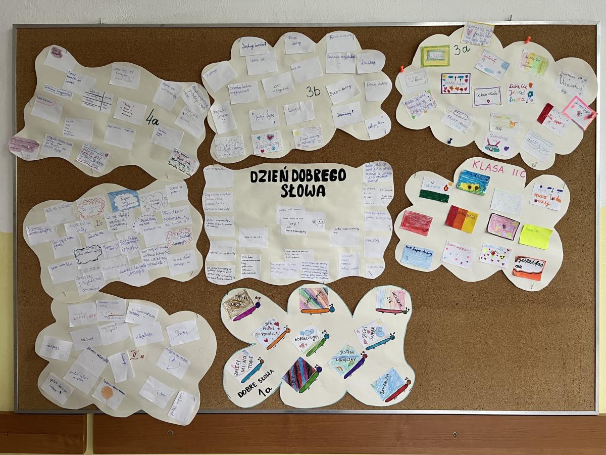 We wszystkich klasach uczniowie brali udział w burzy mózgów na temat „dobrego słowa”. Rozmawiali o mocy słów, tworzyli chmurę dobrych słów i dzielili się pozytywnymi wyrażeniami, które mogą wspierać i dodawać otuchy. Chmury poszczególnych klas zawisły na korytarzowych gazetkach. Tematem dnia była również cyberprzemoc – omawiana na lekcjach informatyki w ciągu całego tygodnia.