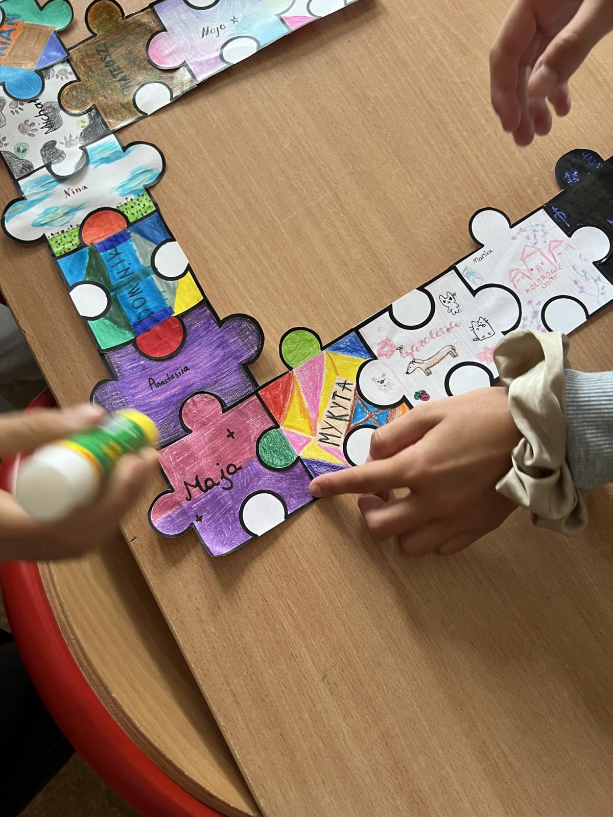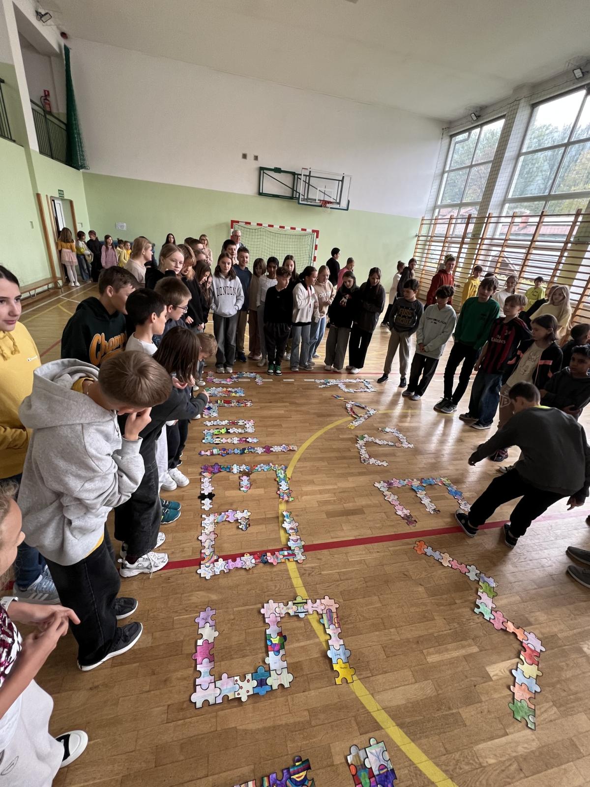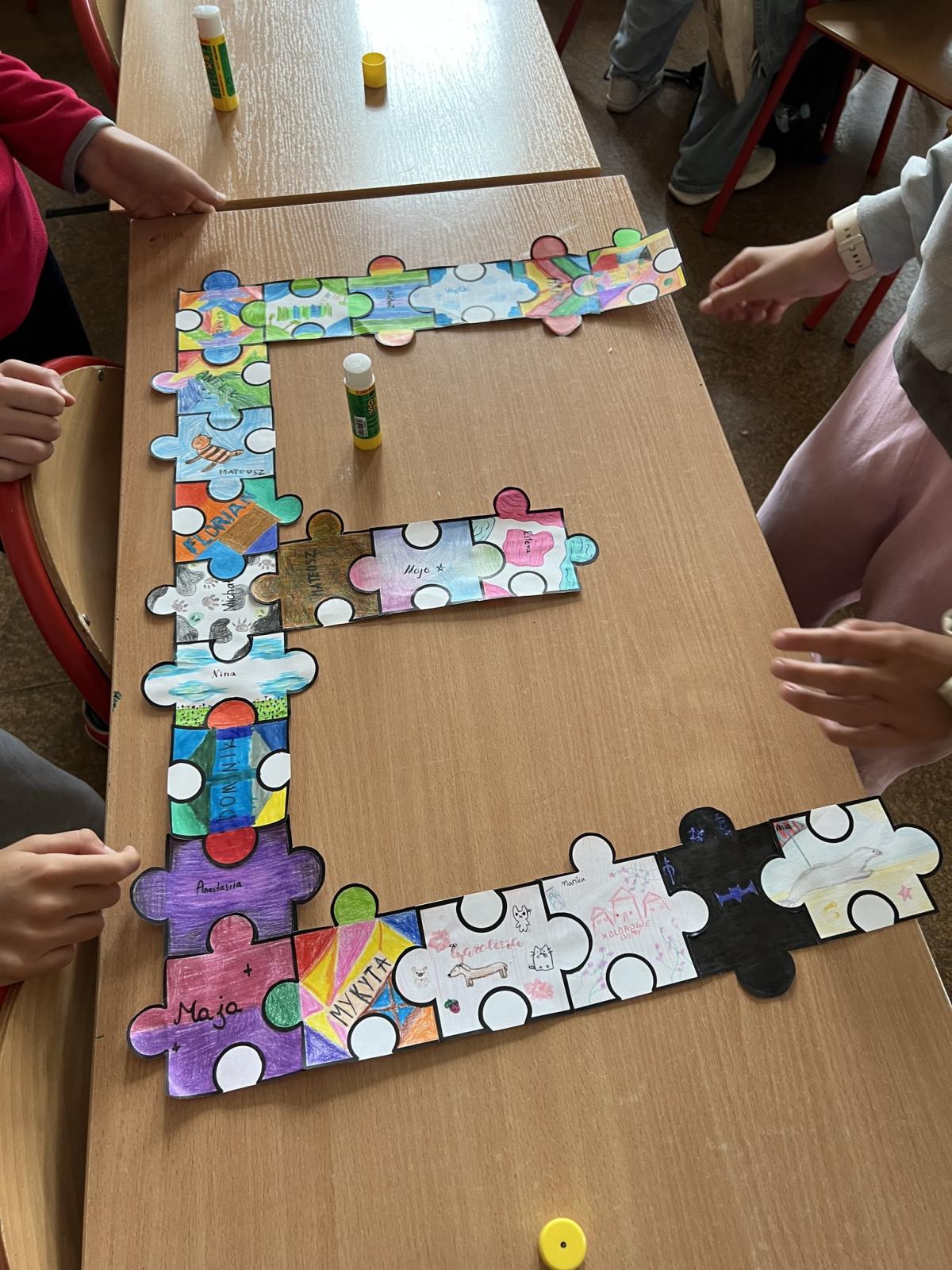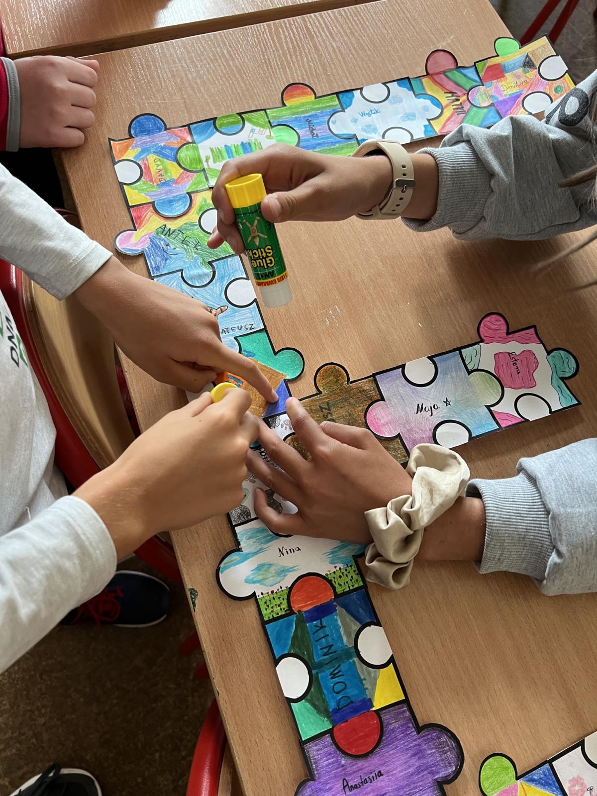 Na każdej lekcji nauczyciele wprowadzali zadania wymagające współpracy. Uczniowie analizowali, co pomagało, a co utrudniało pracę w grupie. Dodatkowo każda klasa otrzymała puzzle, które uczniowie kolorowali i podpisywali swoim imieniem, a następnie ułożyli z nich przydzieloną klasie literę.
