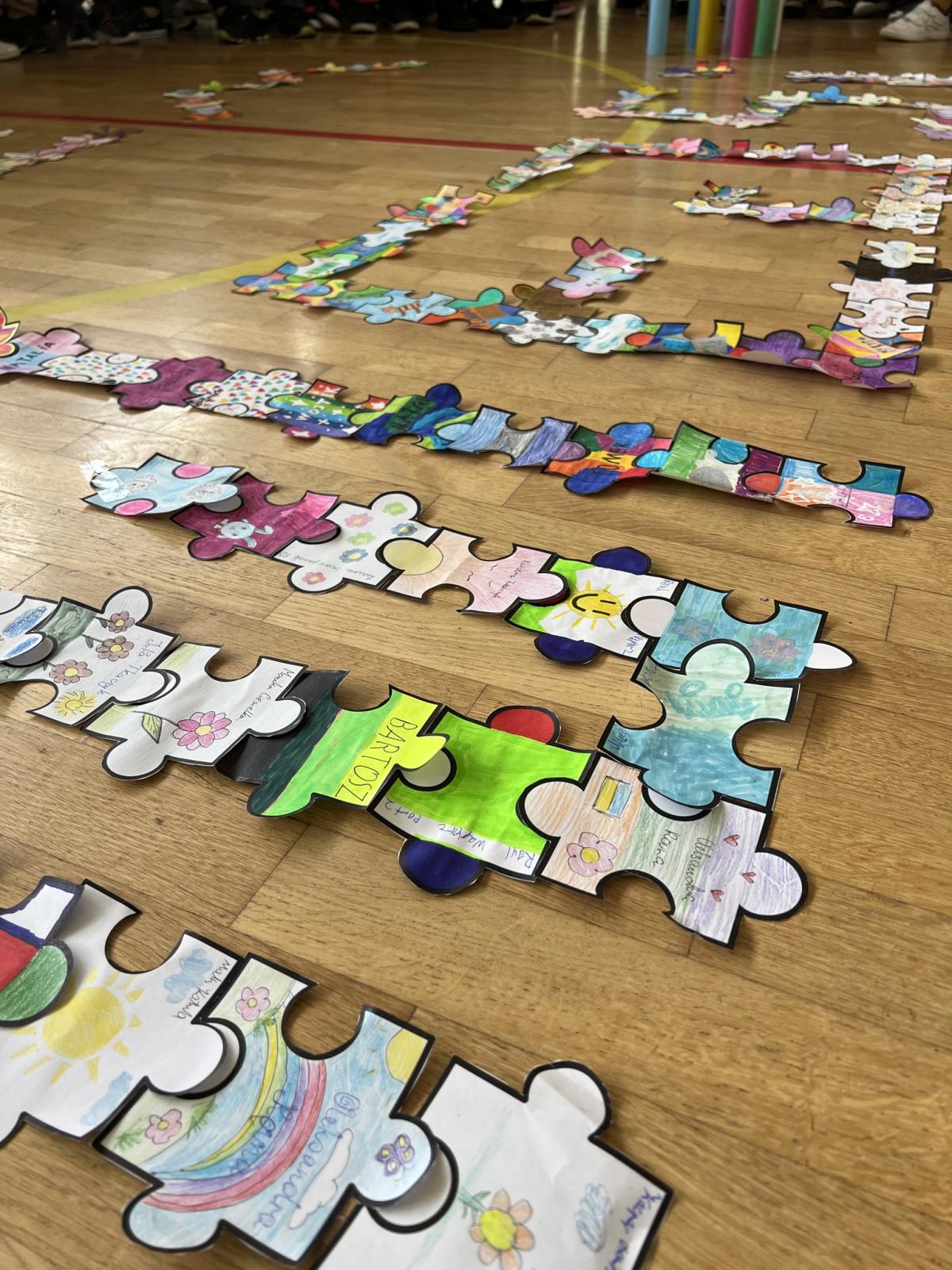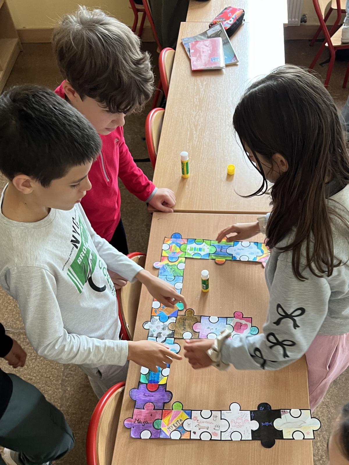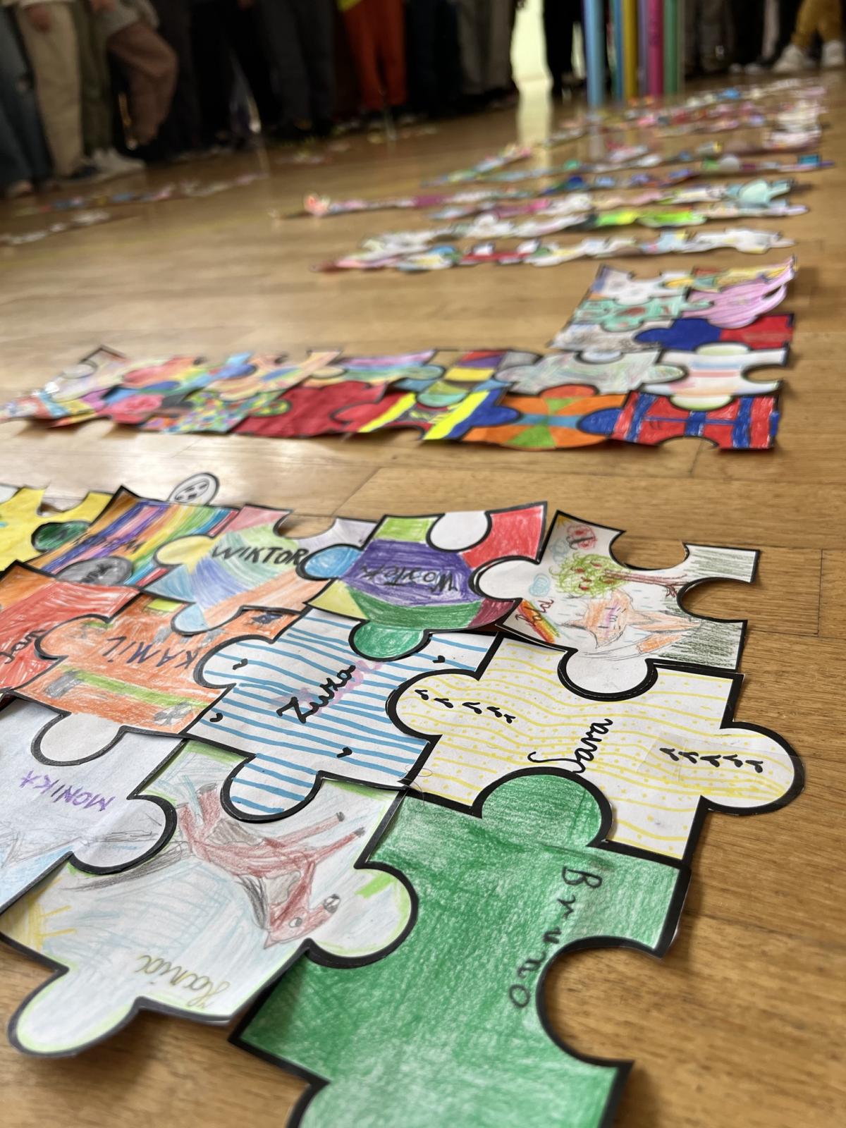 Na każdej lekcji nauczyciele wprowadzali zadania wymagające współpracy. Uczniowie analizowali, co pomagało, a co utrudniało pracę w grupie. Dodatkowo każda klasa otrzymała puzzle, które uczniowie kolorowali i podpisywali swoim imieniem, a następnie ułożyli z nich przydzieloną klasie literę.
