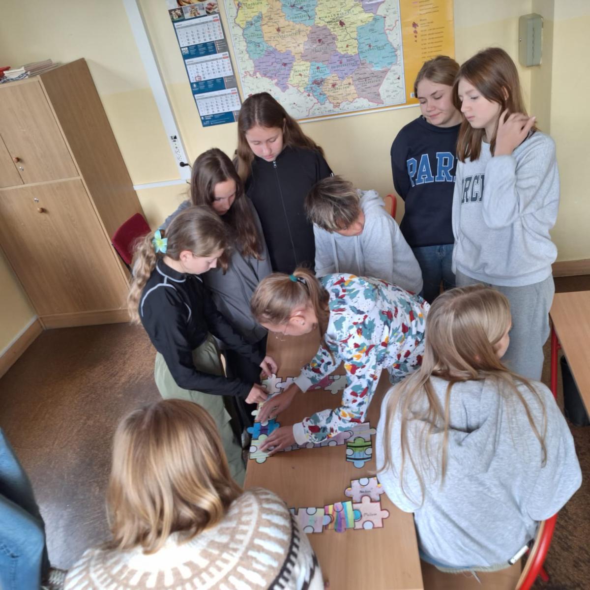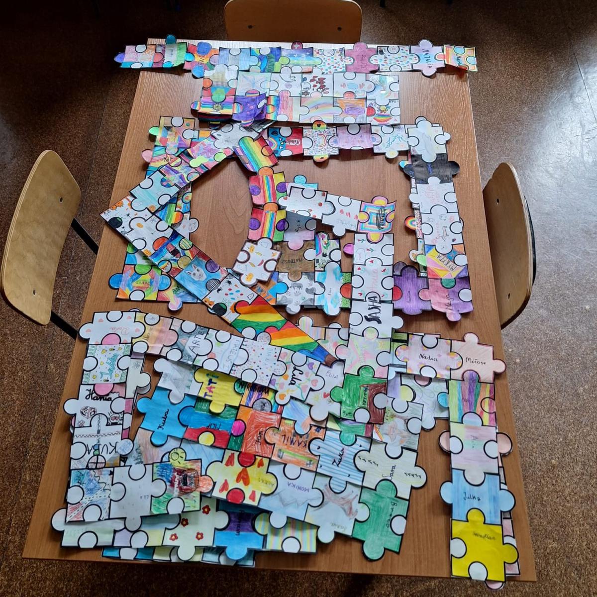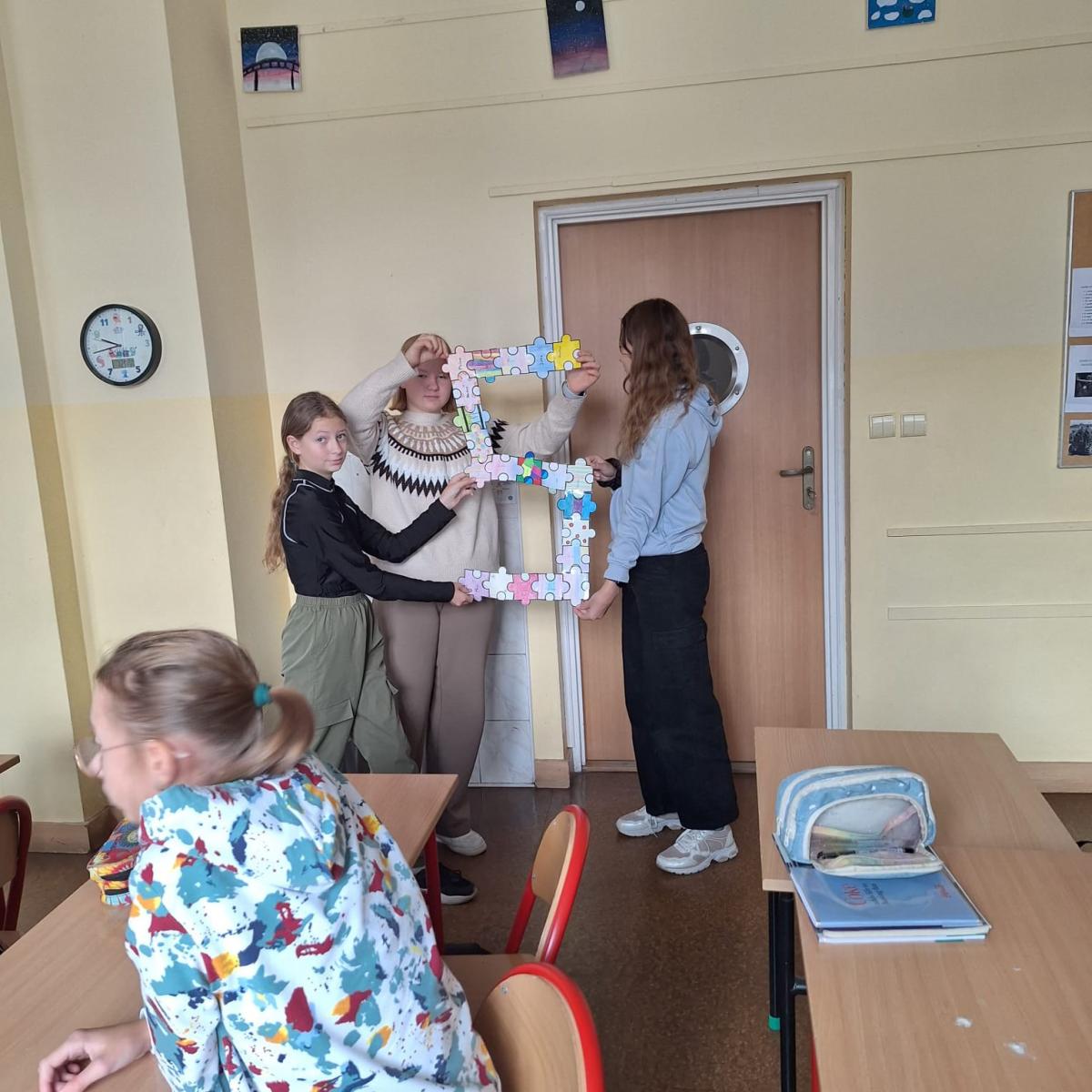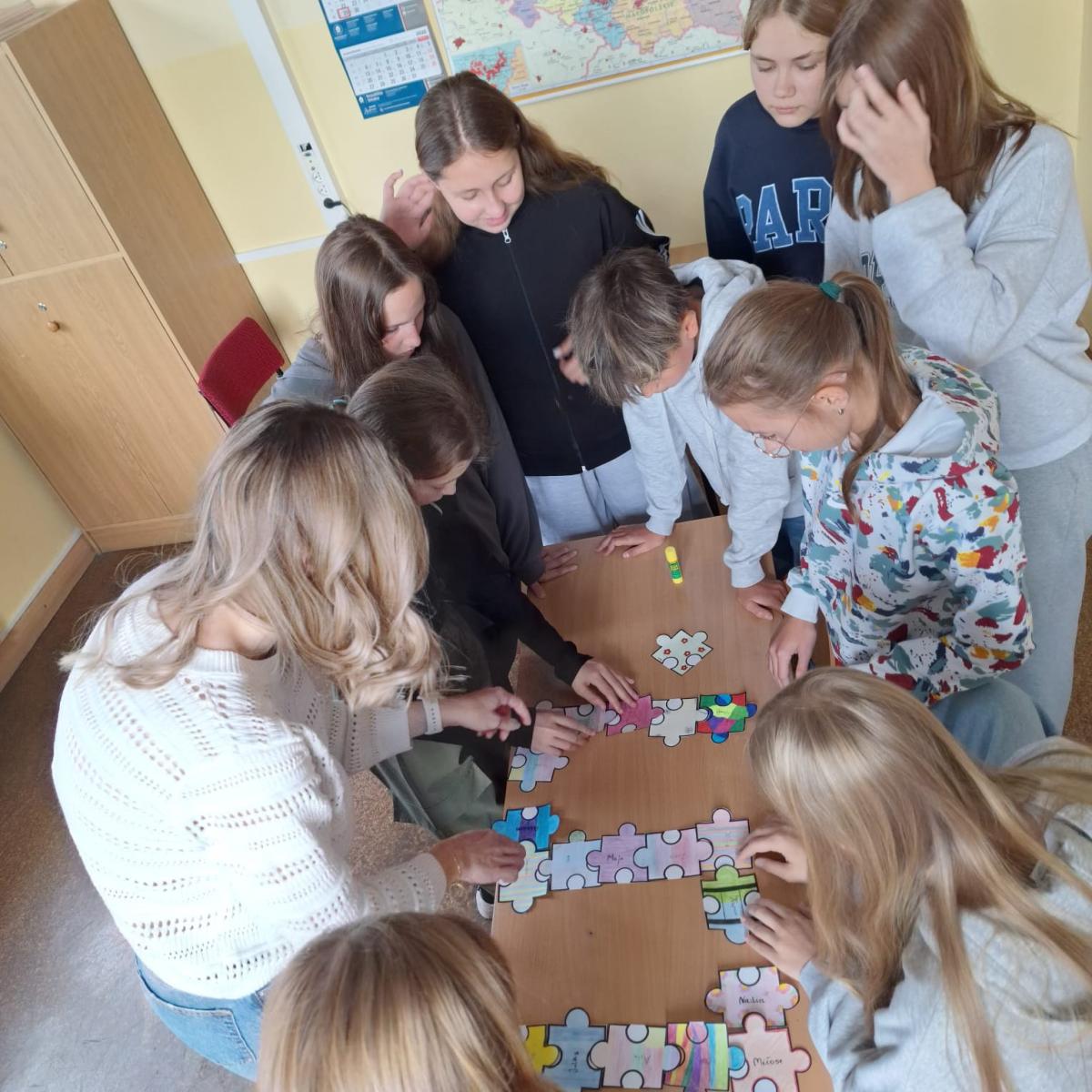 Na każdej lekcji nauczyciele wprowadzali zadania wymagające współpracy. Uczniowie analizowali, co pomagało, a co utrudniało pracę w grupie. Dodatkowo każda klasa otrzymała puzzle, które uczniowie kolorowali i podpisywali swoim imieniem, a następnie ułożyli z nich przydzieloną klasie literę.