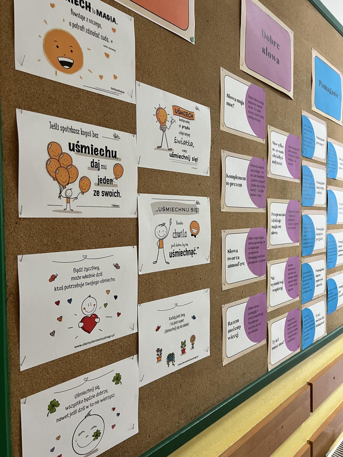 Tydzień rozpoczął się od rozdawania „uśmiechniętych karteczek” przez wolontariuszy wszystkim wchodzącym do szkoły. Na karteczkach znajdowało się uśmiechnięte słońce i sentencja związana z uśmiechem i jego mocą. W klasach 1–3 odbyły się zajęcia na podstawie opowiadania o Tymku i sile przyjaźni, a starsi uczniowie (klasy 4–8) uczestniczyli w lekcji „Sztuka dialogu”, ucząc się rozwiązywania konfliktów w grupie.