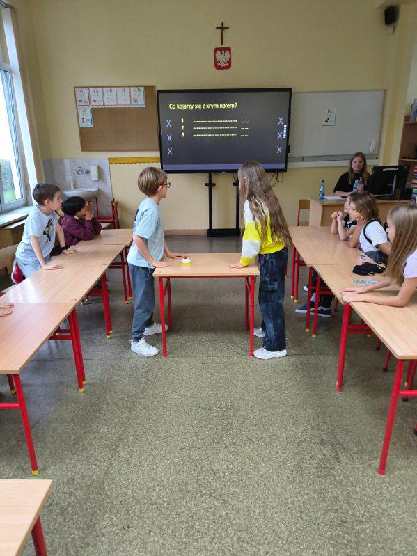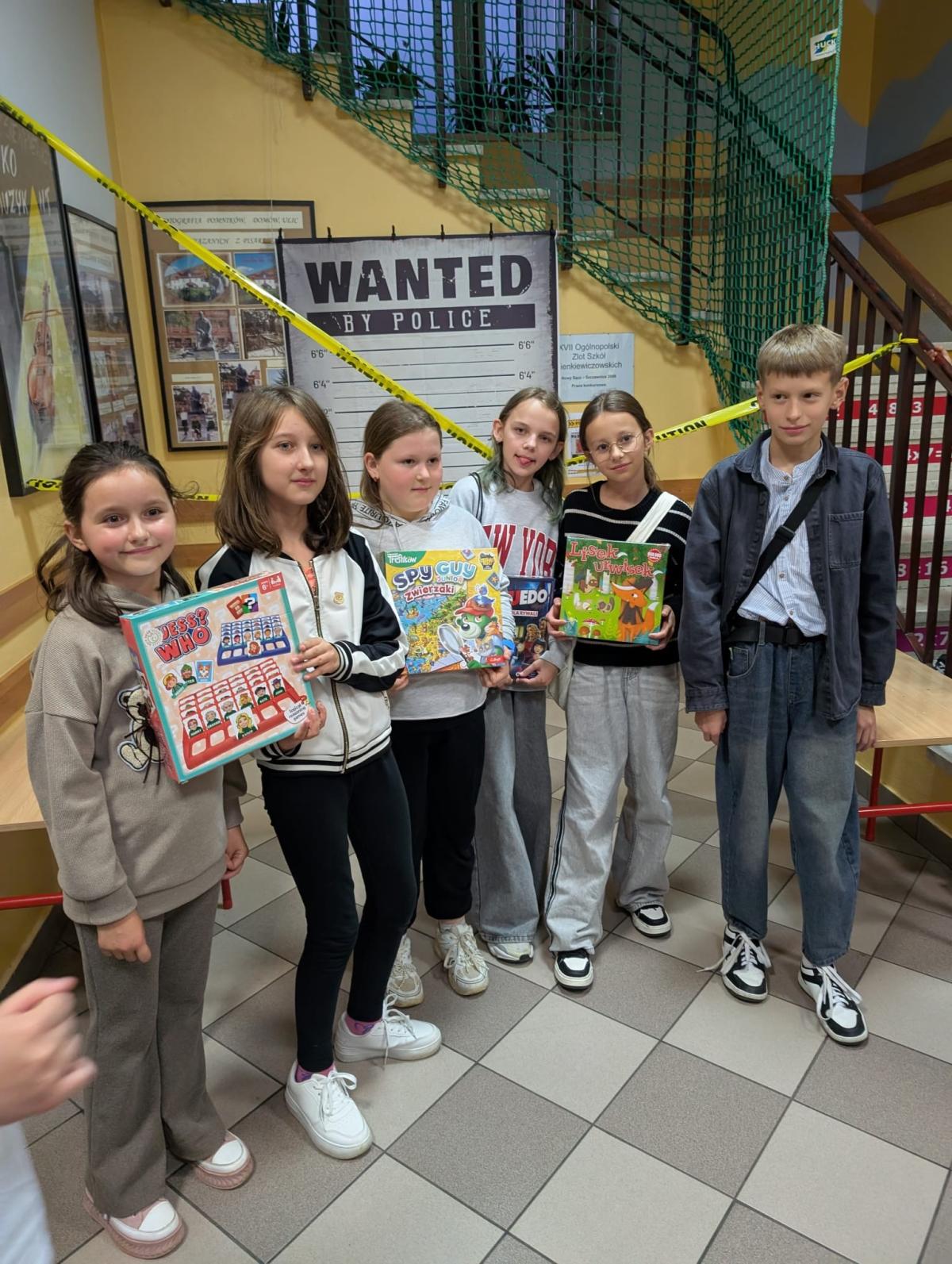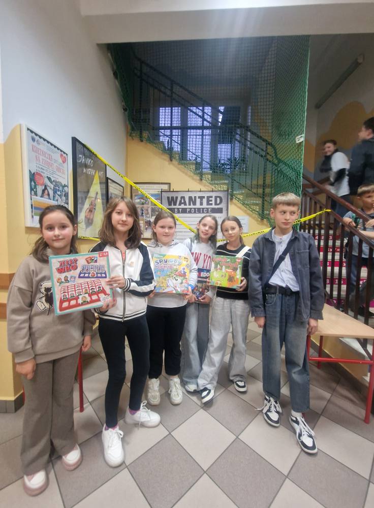 - konkurs familiady w oparciu o gazetkę przygotowaną przez szkolną bibliotekę. Uczniowie odgadywali na czas hasła dotyczące słynnych literackich detektywów jak Herkules Poirot, Sherlock Holmes, panna Marple, Arsen Lupin i inni.