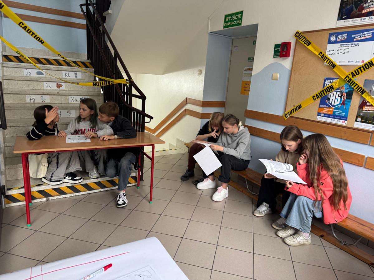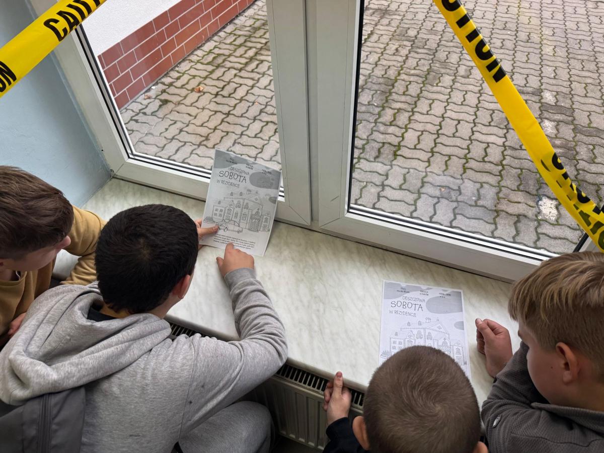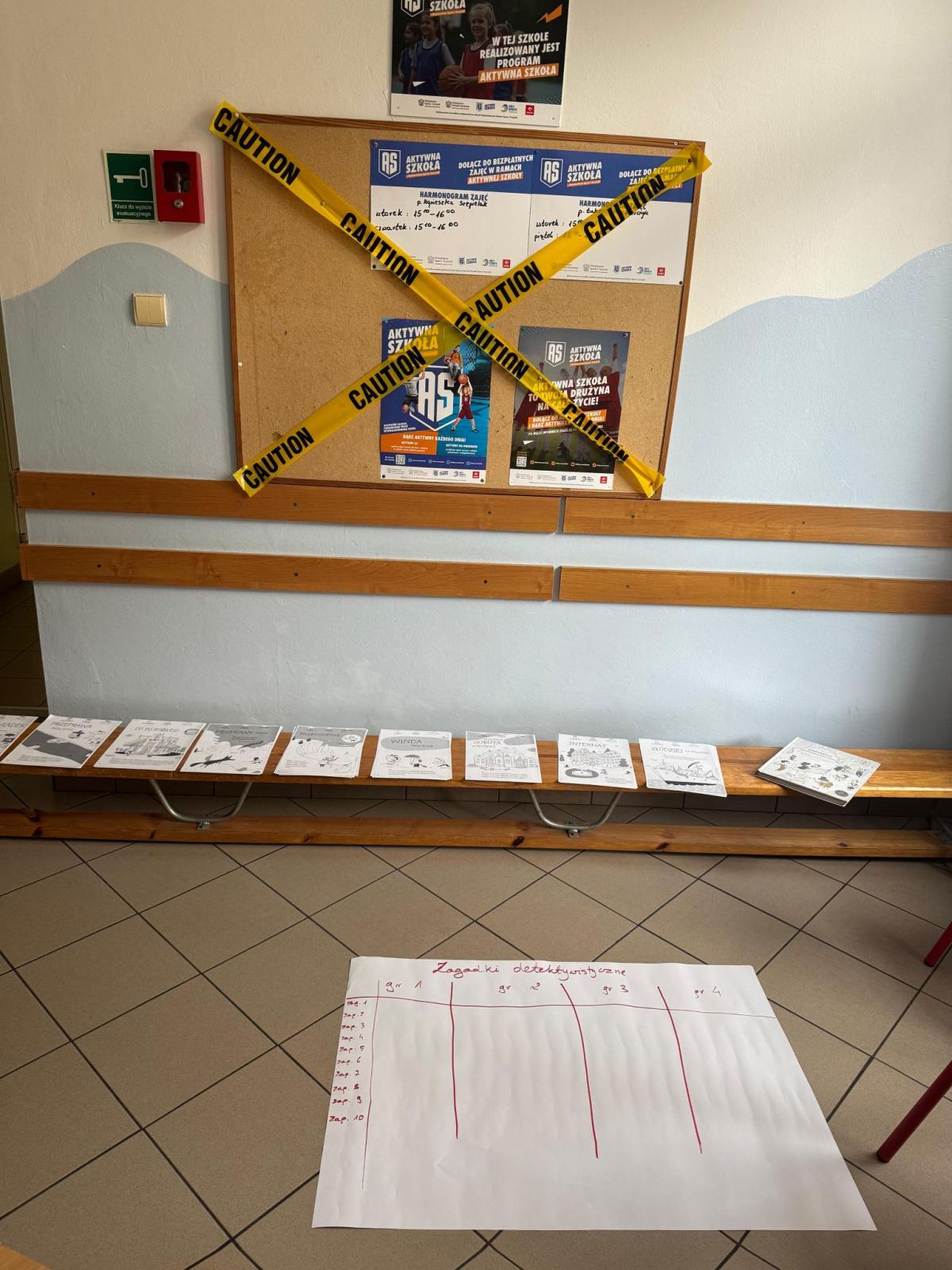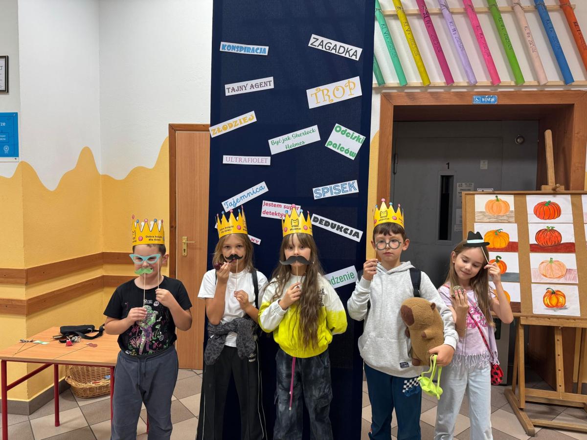 - dwie foto budki, przy których uczniowie mogli robić sobie zdjęcia pozując na detektywów lub złodziei;