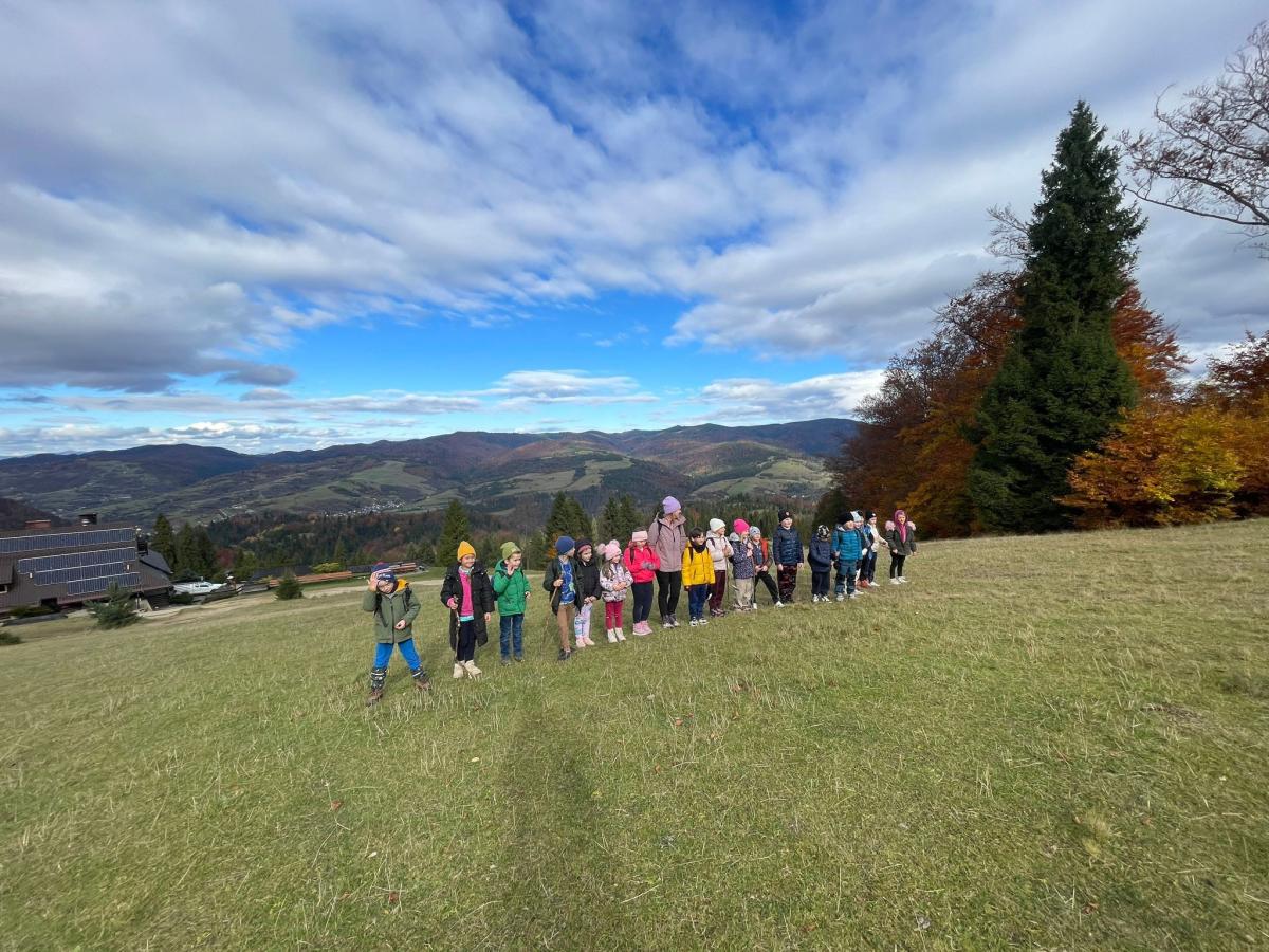 Uczniowie klasy pierwszej wybrali się na górską wycieczkę na Durbaszkę w Małych Pieninach. Trasa prowadziła malowniczym szlakiem z pięknymi widokami na Tatry i okoliczne doliny. Po drodze dzieci podziwiały przyrodę, poznawały ciekawostki o górach i odpoczywały w schronisku pod Durbaszką. Pogoda dopisała, a wspólne wędrówki i zabawy na świeżym powietrzu sprawiły wszystkim dużo radości.