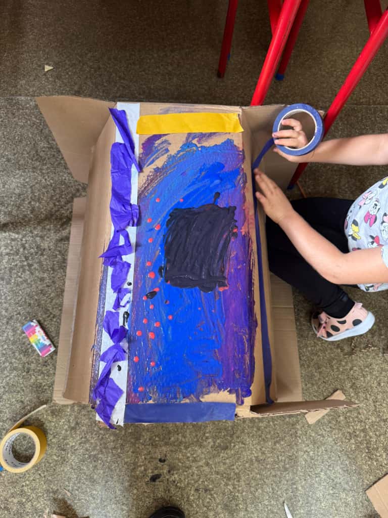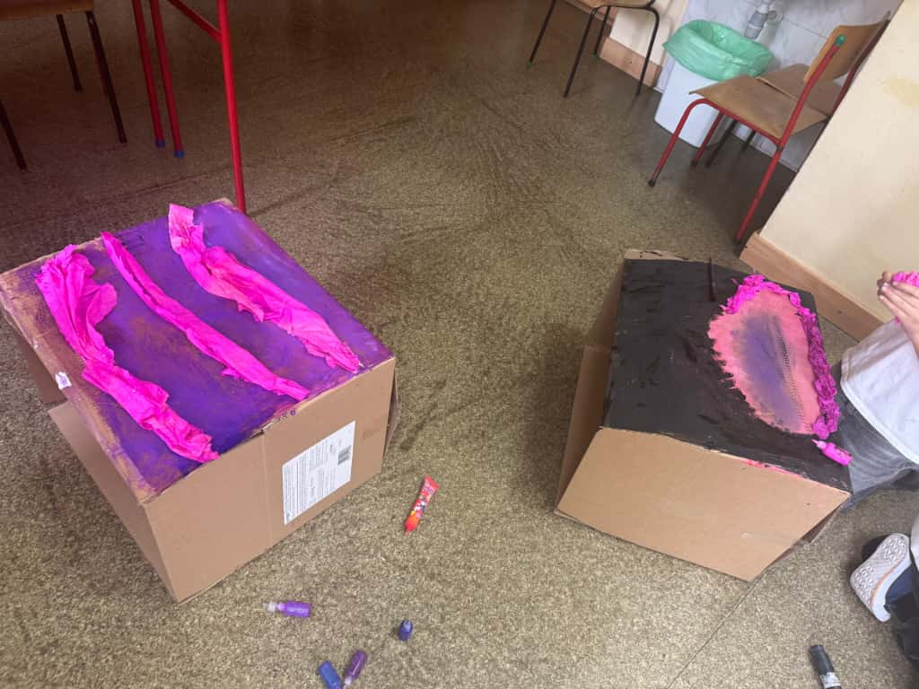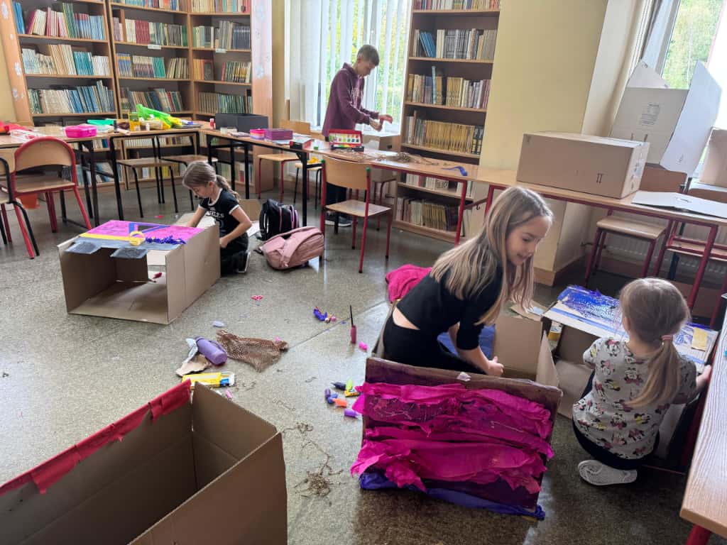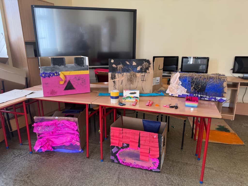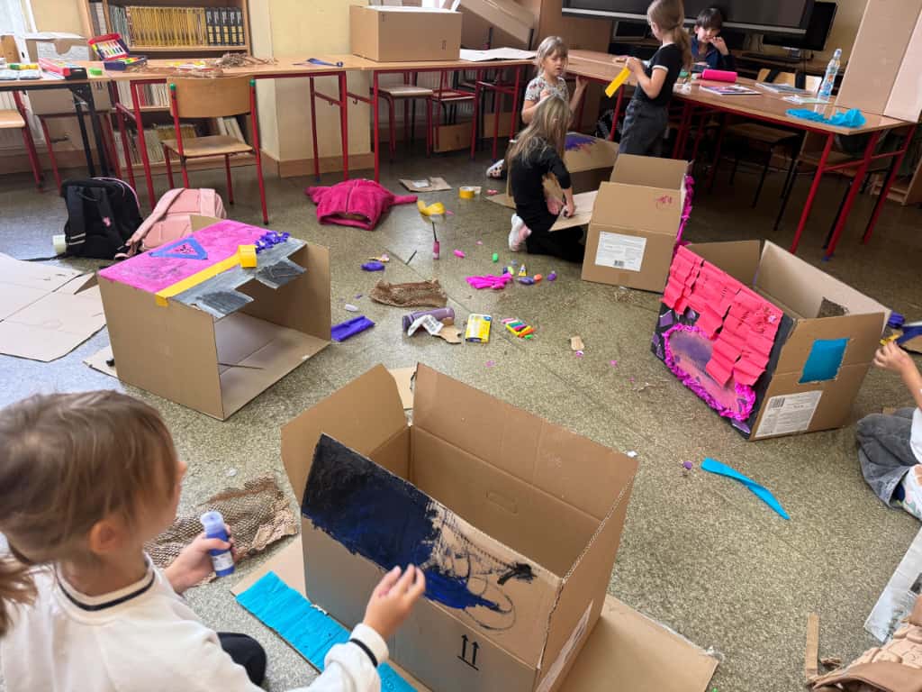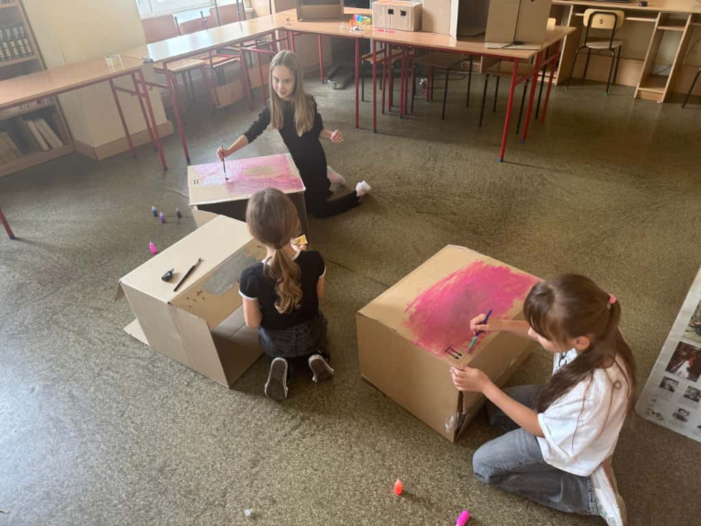 W bibliotece odbyły się kreatywne warsztaty, podczas których uczniowie budowali imponujące domy z kartonów- miejsca, w których mogłaby rozegrać się akcja przygód młodych detektywów. Było to połączenie literackiej inspiracji z techniczną pomysłowością – prawdziwa uczta dla wyobraźni!