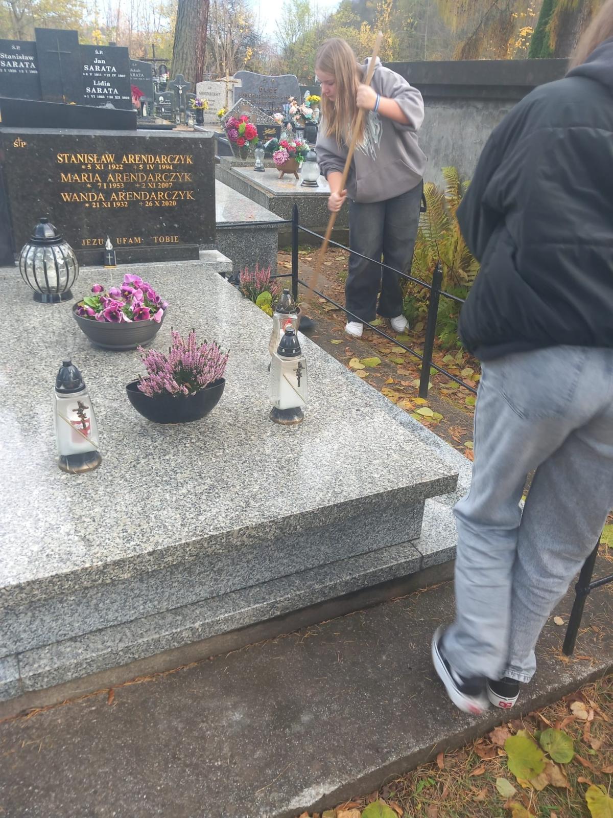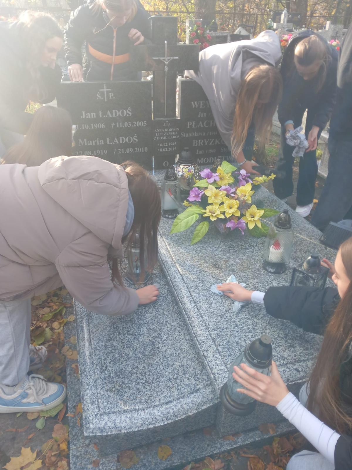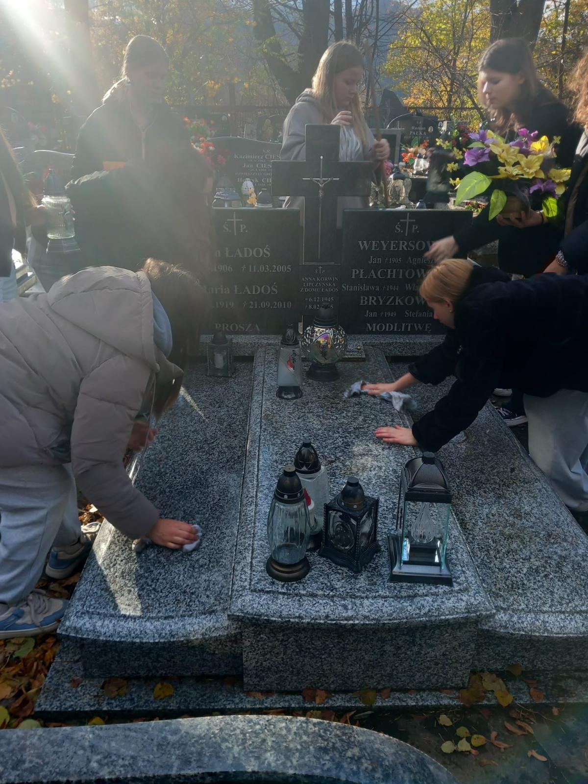 Z okazji Wszystkich Świętych uczniowie i nauczyciele naszej szkoły wzięli udział w akcji sprzątania grobów zmarłych nauczycieli oraz osób związanych z historią i działalnością szkoły. Zadbano też o miejsca pamięci narodowej, takie jak mogiły i pamiątkowe tablice.