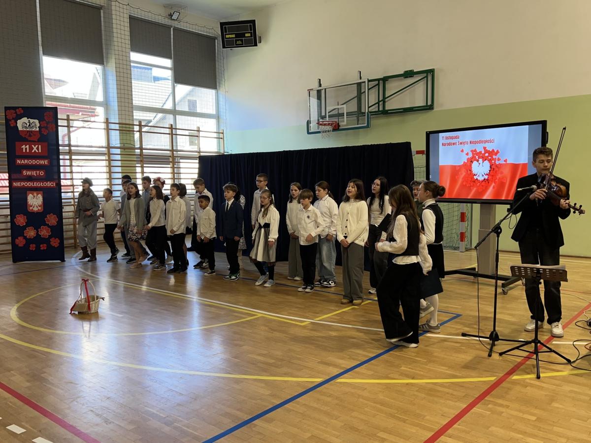 Uczniowie klasy 5 przygotowali piękny apel z okazji Narodowego Święta Niepodległości. Podczas uroczystości przypomniano najważniejsze wydarzenia z historii Polski oraz zaprezentowano wiersze i pieśni patriotyczne. Dzięki występowi mogliśmy wspólnie przypomnieć sobie, jak ważna jest wolność i miłość do ojczyzny.