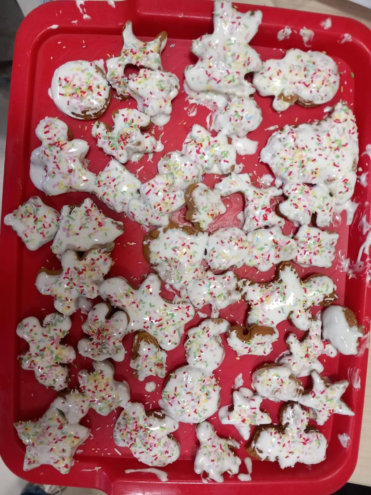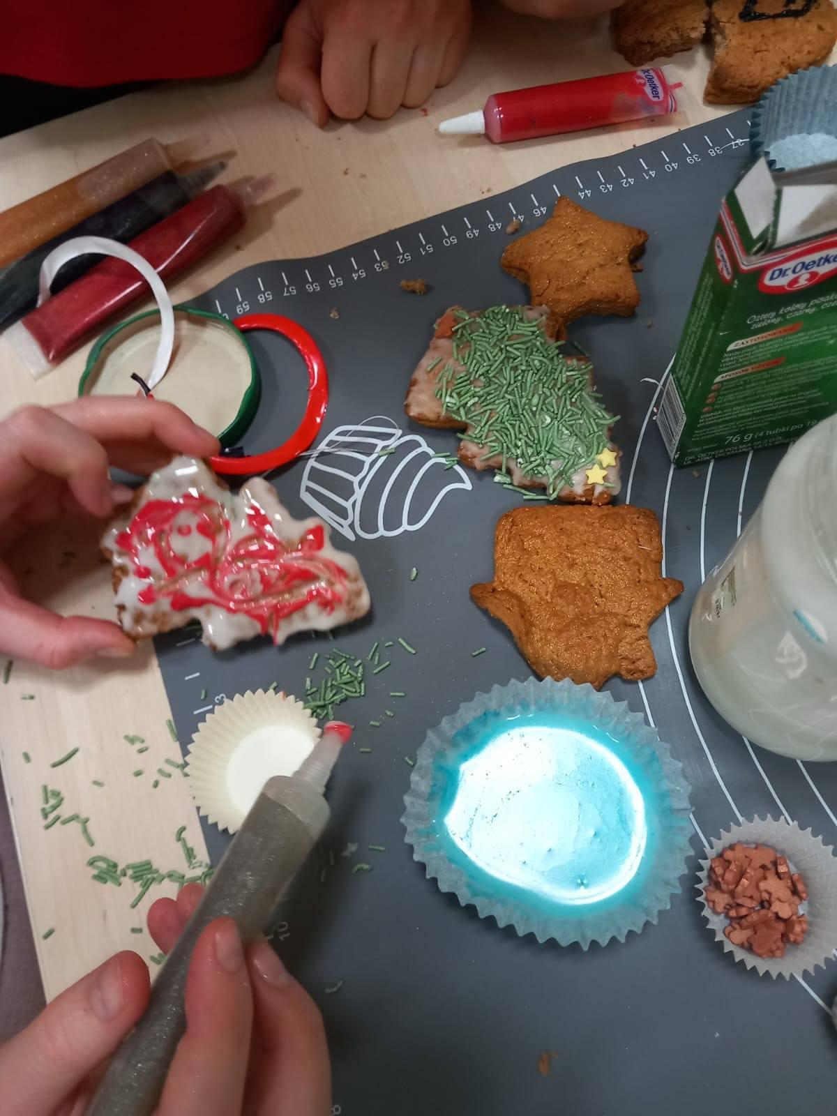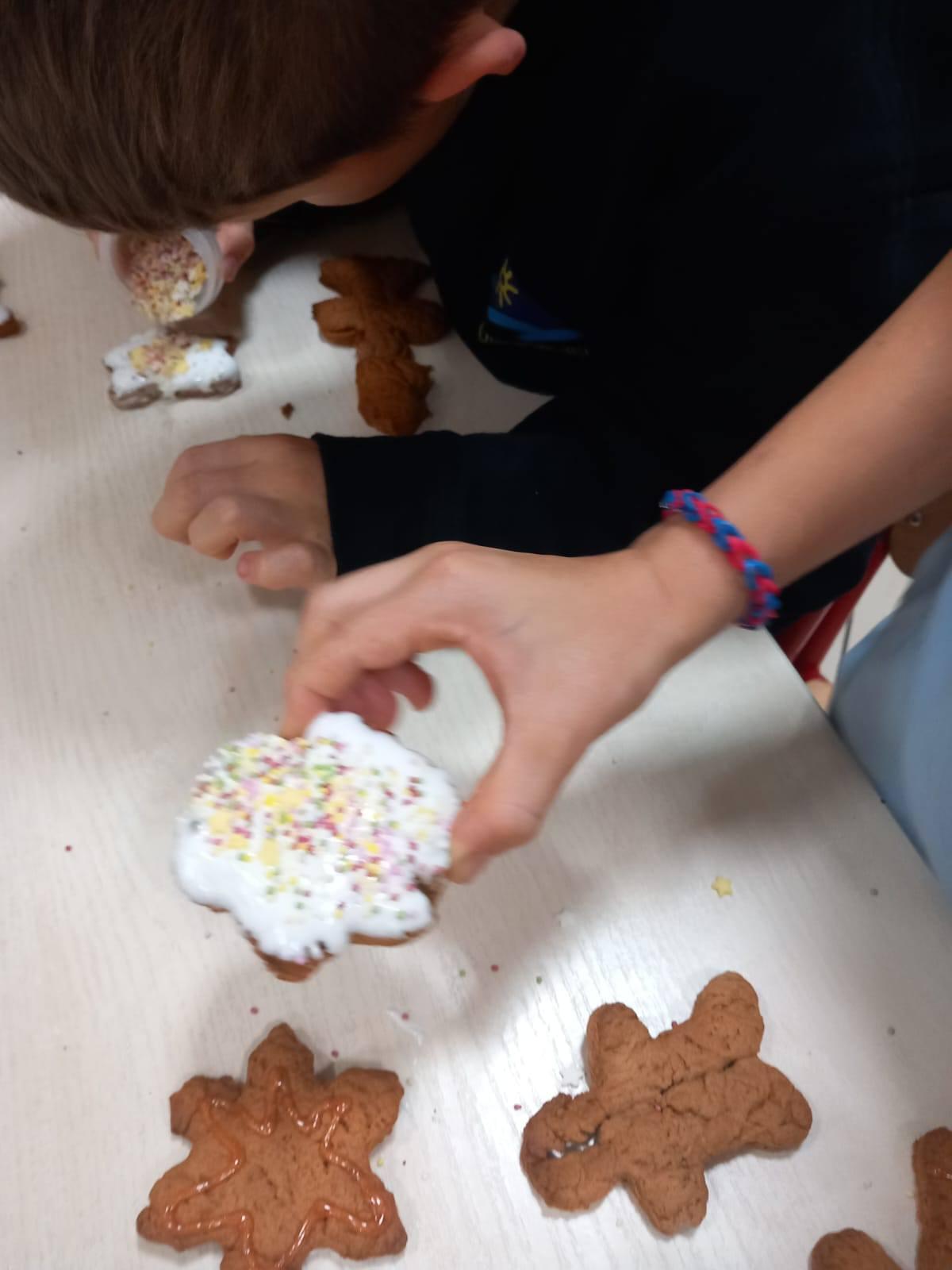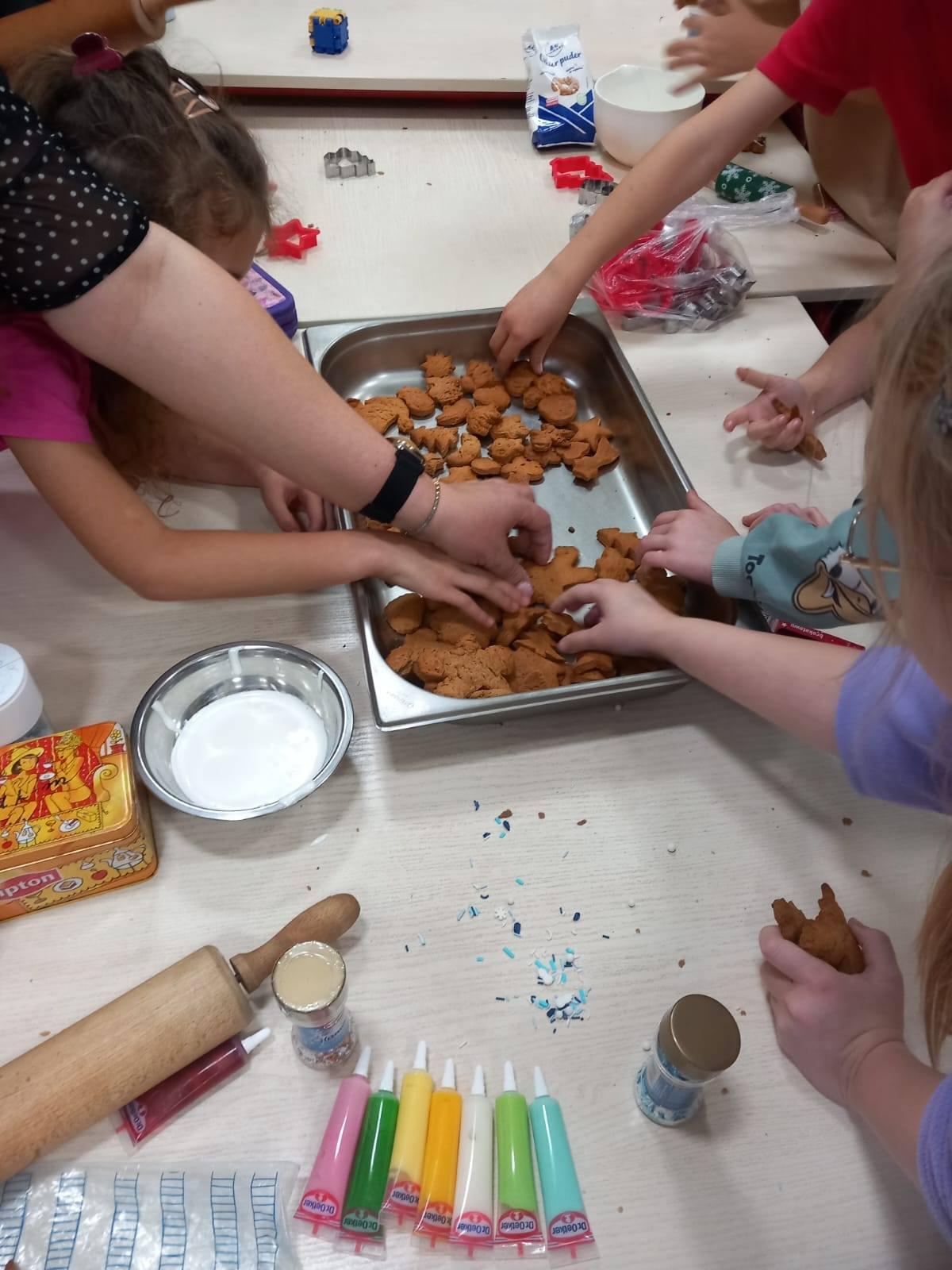Dzisiaj szkolny wolontariat zorganizował dla dzieci z klas 1–4 wyjątkowe zajęcia z pieczenia i dekorowania pierniczków. Było mnóstwo zabawy, kreatywnego lukrowania i świątecznego nastroju. Dzieci z ogromnym zaangażowaniem tworzyły swoje słodkie dzieła, a atmosfera była pełna uśmiechu, ciepła i zapachu ciasteczek.