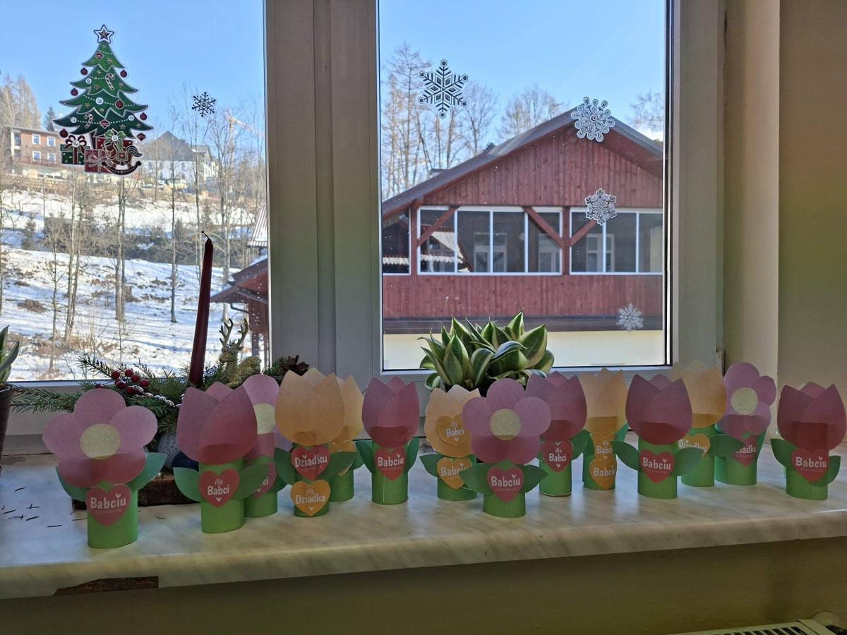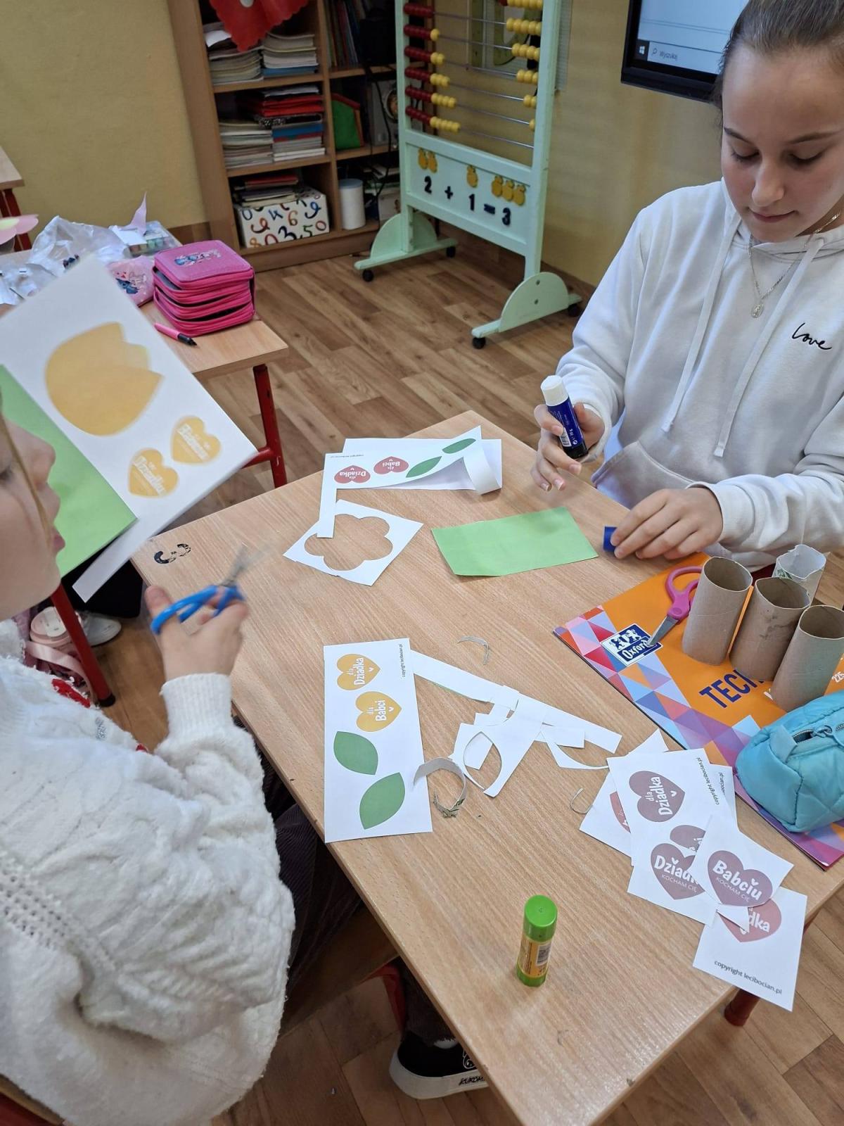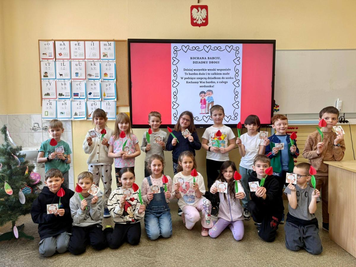 Uczniowie klas młodszych z wielkim zaangażowaniem przygotowywali laurki, wierszyki i drobne niespodzianki, by uczcić Dzień Babci i Dziadka.