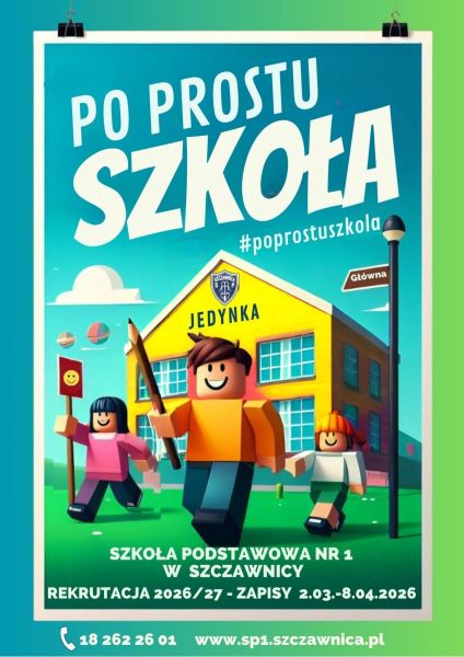 Szkoła Podstawowa nr 1 w Szczawnicy ogłasza zapisy do klasy 1 na rok szkolny 2026/2027.