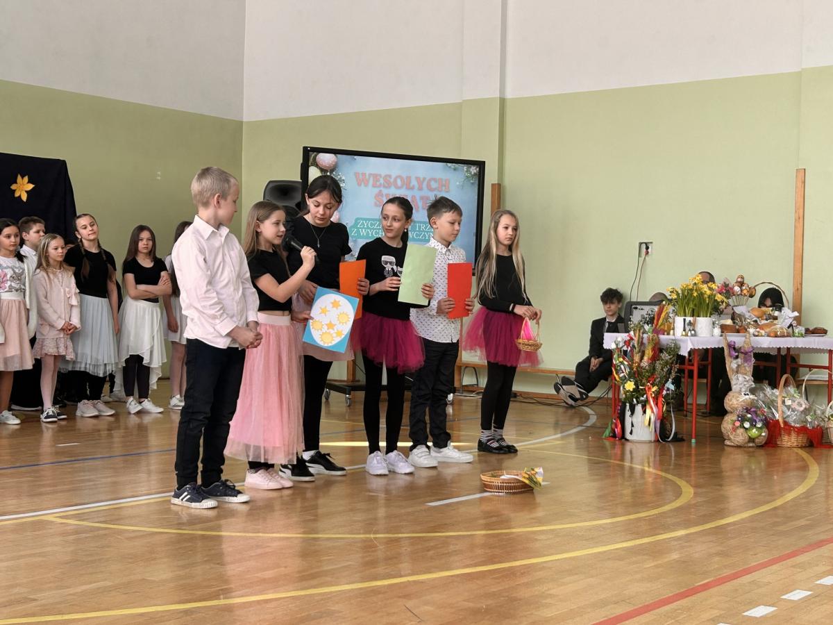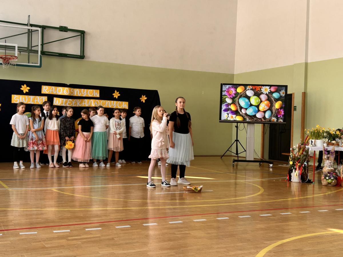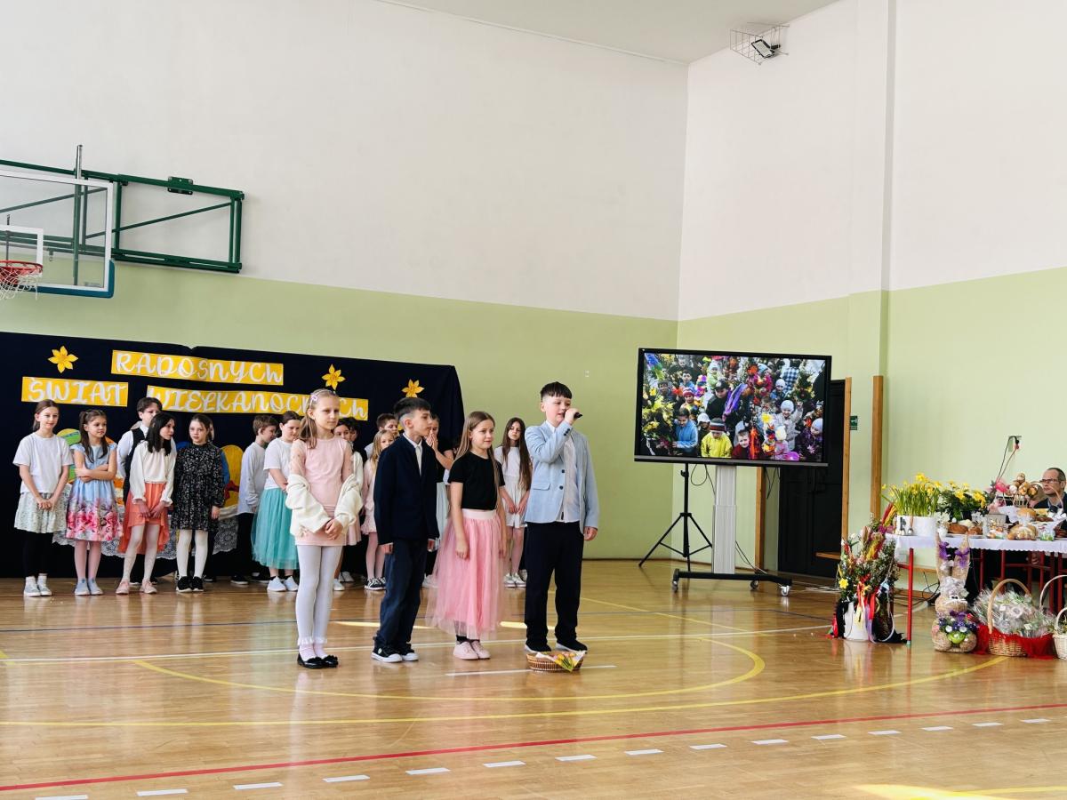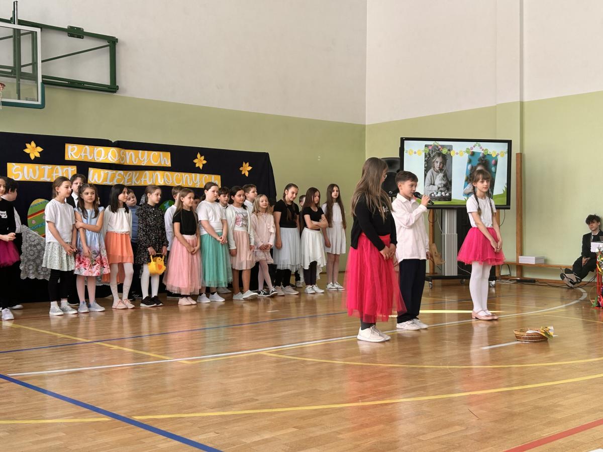 W ostatnim dniu nauki przed Świętami Wielkanocnymi na uroczyste spotkanie zaprosili nas uczniowie klas 3a i 3b. Trzecioklasiści w ciekawy i radosny sposób przybliżyli nam wielkanocne zwyczaje i tradycje, a także zaprezentowali piękne, świąteczne piosenki oraz taniec. Nie zabrakło serdecznych życzeń, które złożyli wszystkim obecnym i ich rodzinom wykonawcy a także pan dyrektor, ksiądz Kamil Porębski i Samorząd Uczniowski. WESOŁYCH ŚWIĄT.