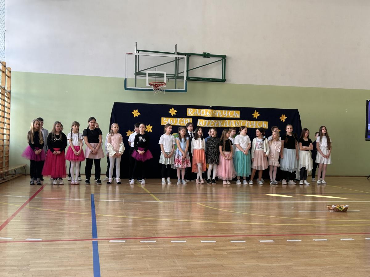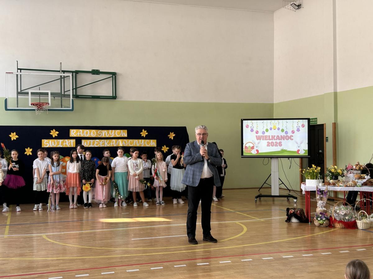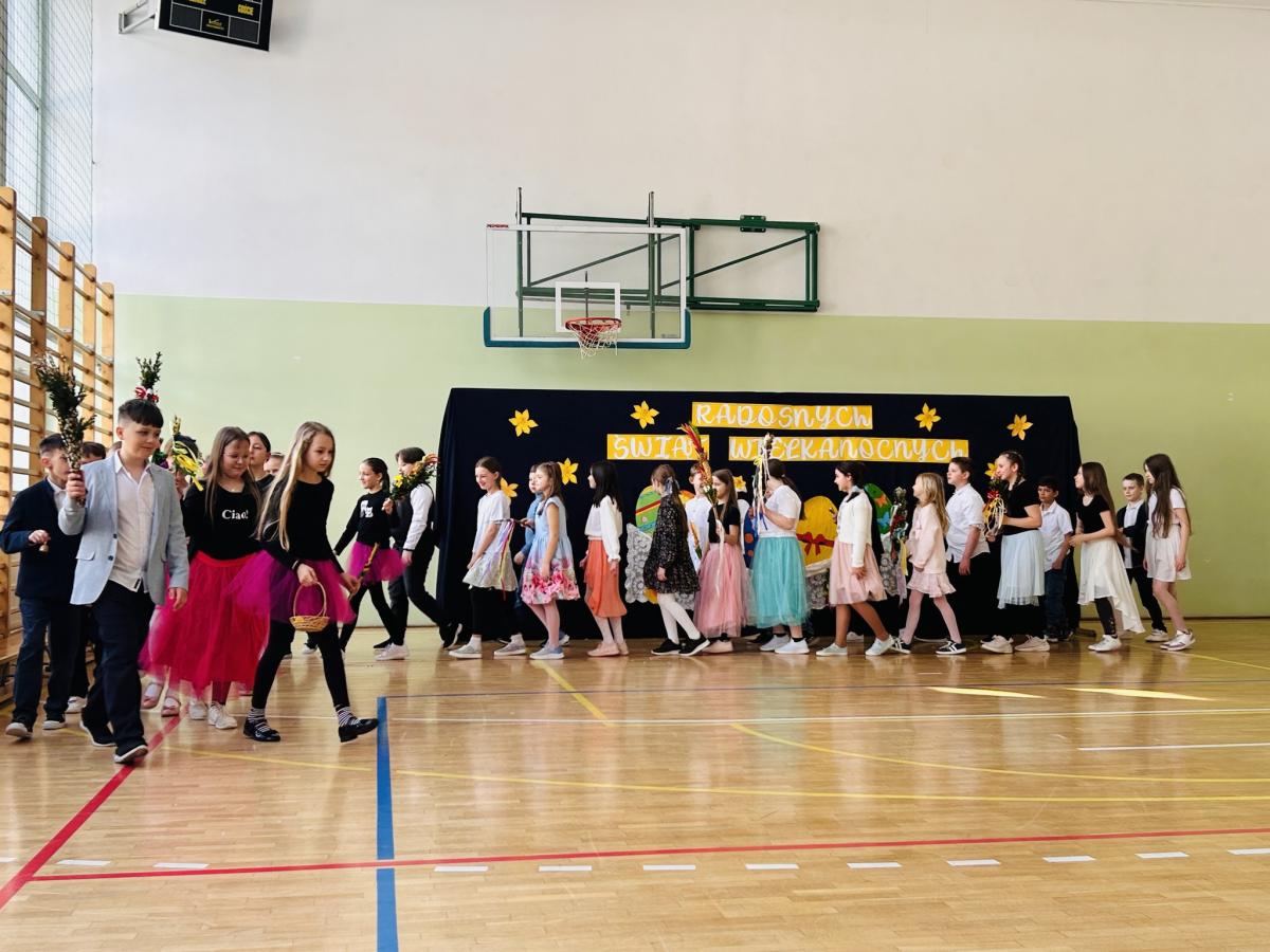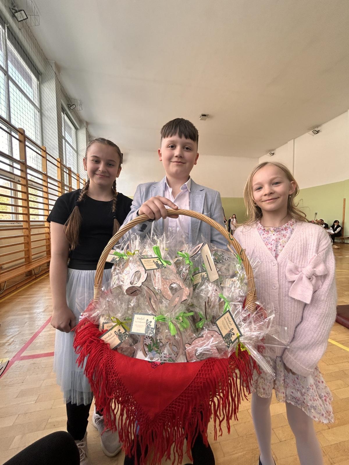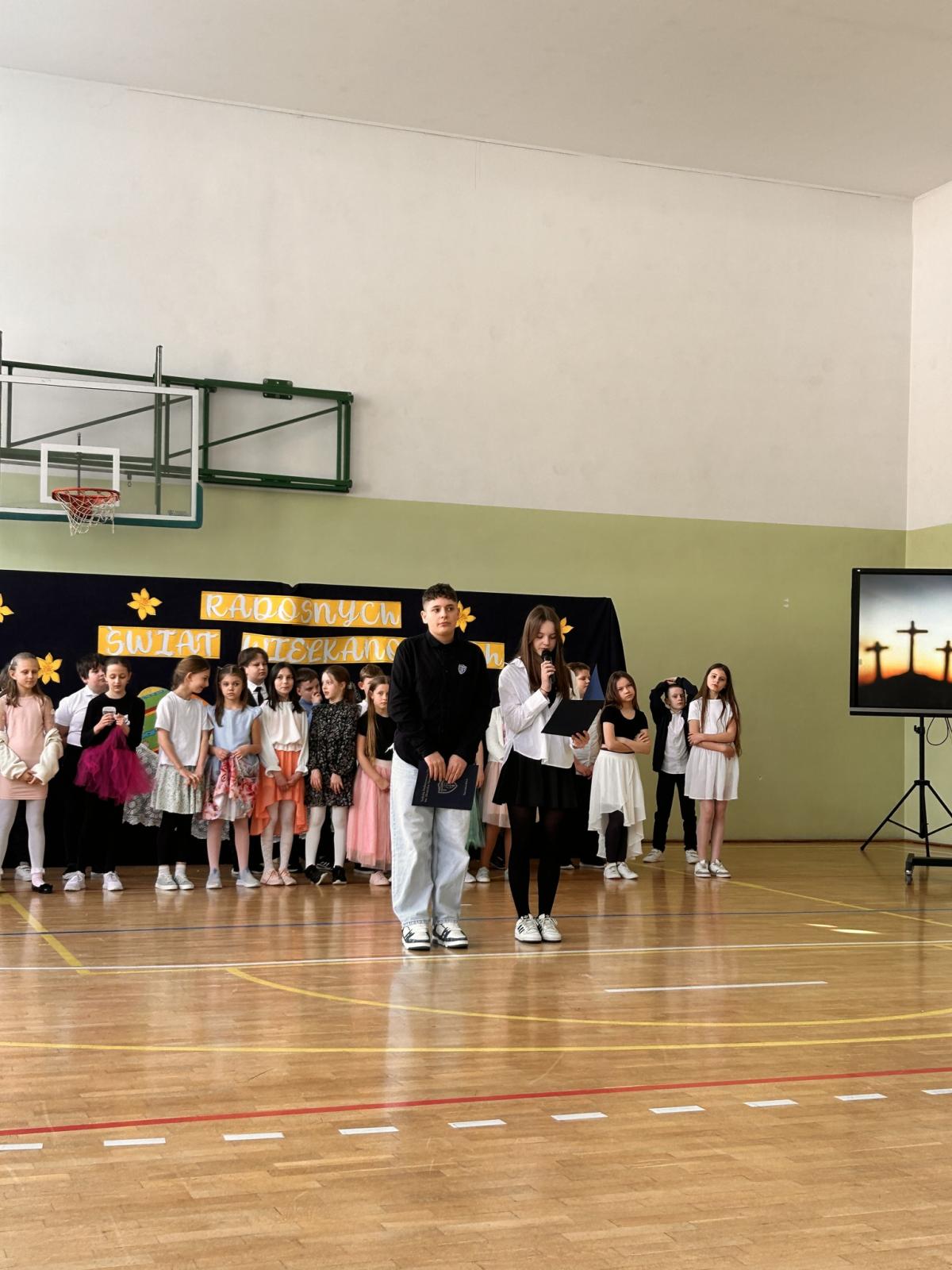W ostatnim dniu nauki przed Świętami Wielkanocnymi na uroczyste spotkanie zaprosili nas uczniowie klas 3a i 3b. Trzecioklasiści w ciekawy i radosny sposób przybliżyli nam wielkanocne zwyczaje i tradycje, a także zaprezentowali piękne, świąteczne piosenki oraz taniec. Nie zabrakło serdecznych życzeń, które złożyli wszystkim obecnym i ich rodzinom wykonawcy a także pan dyrektor, ksiądz Kamil Porębski i Samorząd Uczniowski. WESOŁYCH ŚWIĄT.