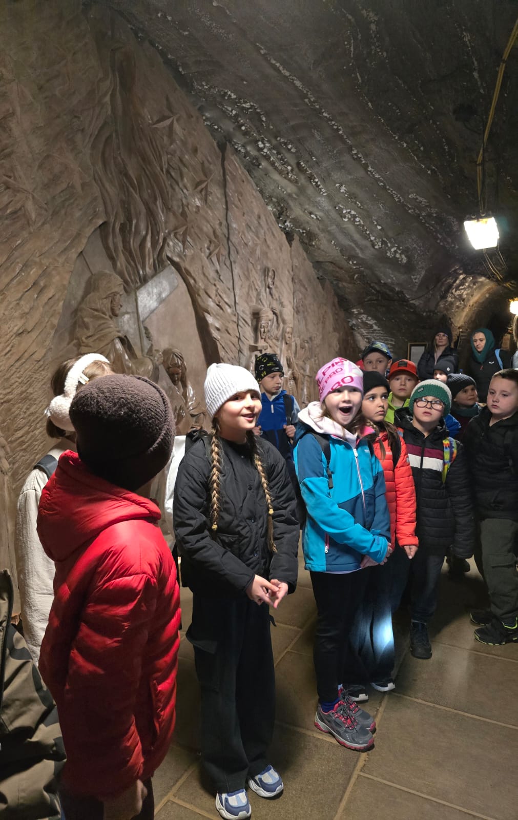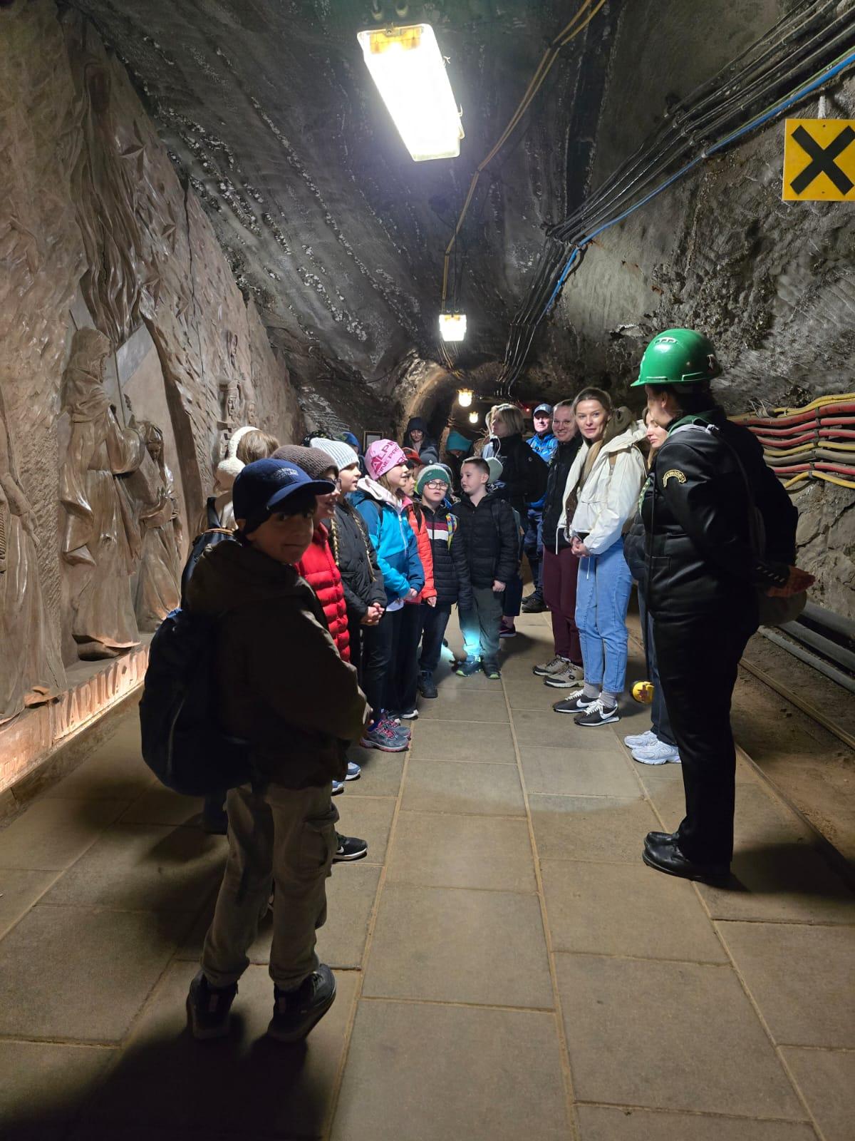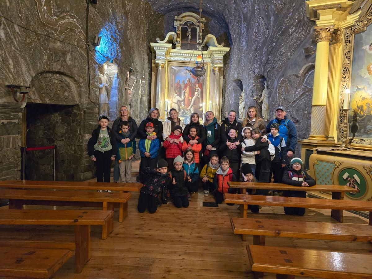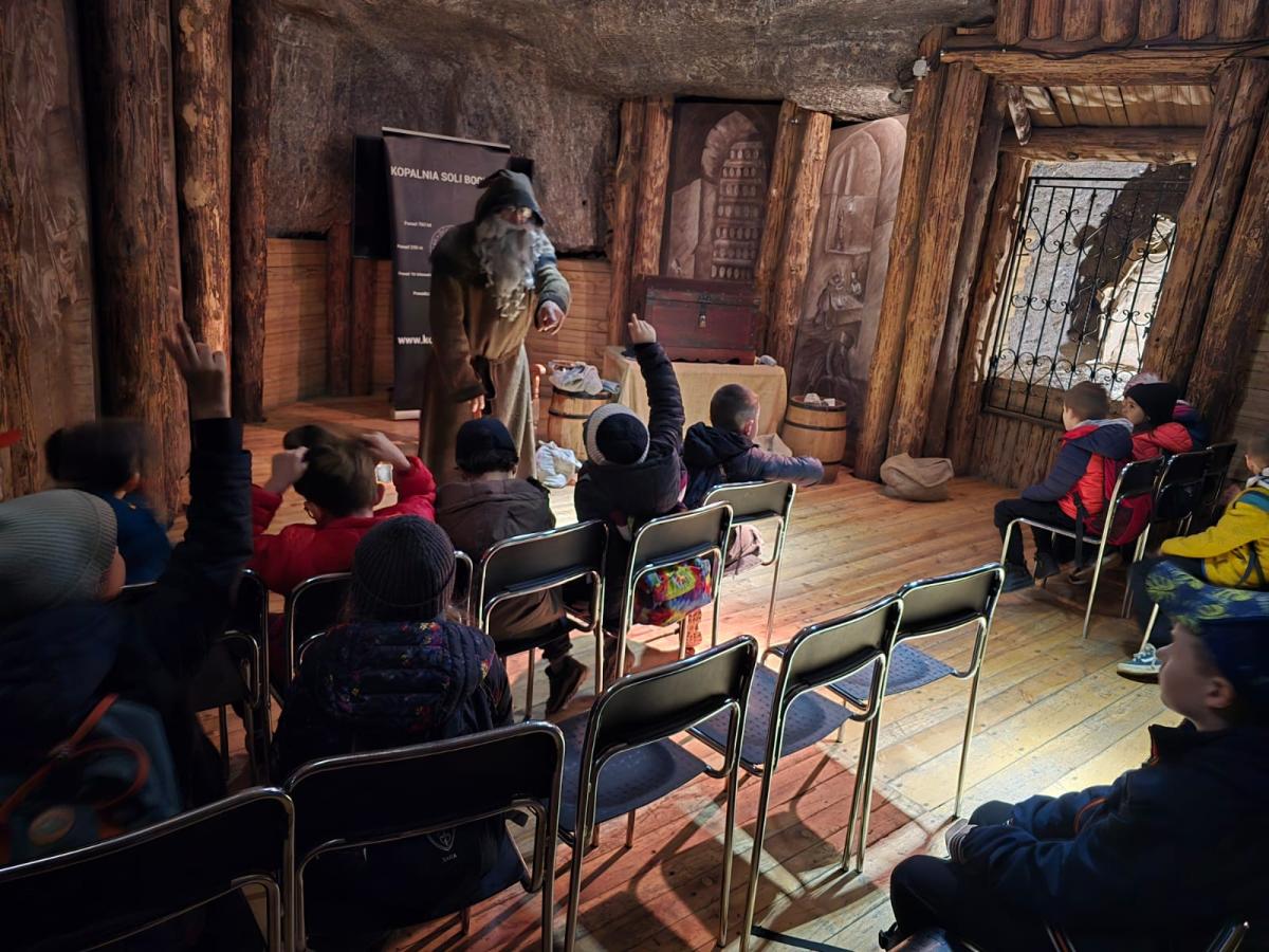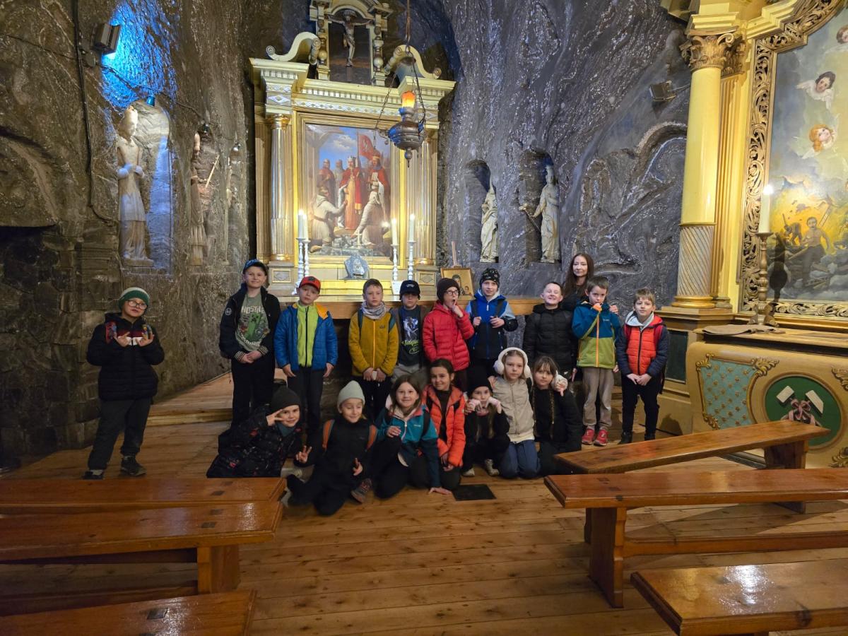 Wczoraj klasa 2a wybrała się na wycieczkę do Bochni, gdzie uczniowie poznali historię najstarszej kopalni soli w Polsce. Dowiedzieli się, jak dawniej wydobywano sól i do czego była wykorzystywana w przeszłości – między innymi jako cenny środek konserwujący żywność oraz to, że była towarem tak drogim, że nazywano ją białym złotem. Podczas pobytu pod ziemią uczniowie zjeżdżali na długiej podziemnej zjeżdżalni, a także grali w piłkę na boisku sportowym. Wzięli udział w spotkaniu ze Skarbnikiem, który zadawał im zagadki, a za prawidłowe odpowiedzi wręczał woreczki soli. Dzieci dowiedziały się również, że sól ma działanie lecznicze na drogi oddechowe, dlatego pobyt w kopalni wpływa korzystnie na zdrowie. Wycieczka była pełna wrażeń i pozwoliła uczniom połączyć naukę z dobrą zabawą.