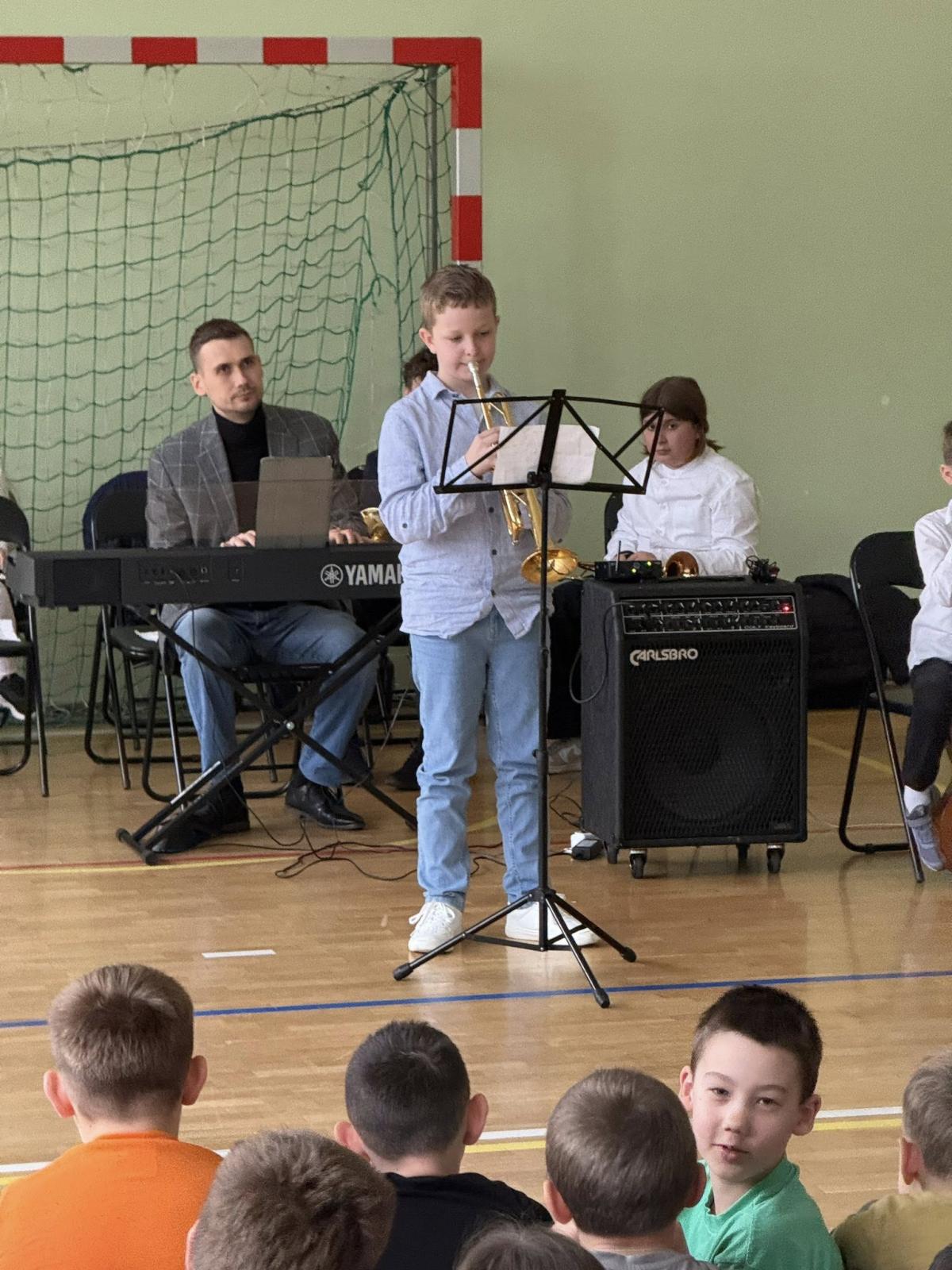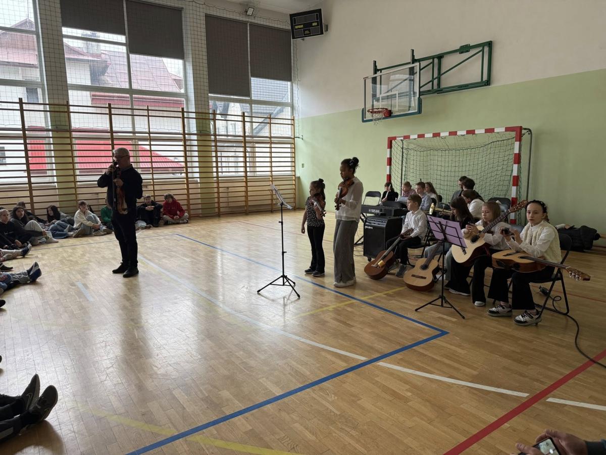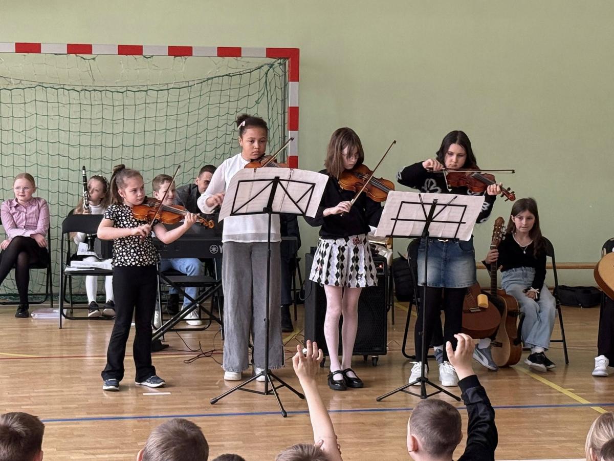 W czwartek 16 kwietnia gościliśmy przedstawicieli Państwowej Szkoły Muzycznej w Nowym Targu, którzy przybliżyli uczniom swoją działalność oraz ofertę edukacyjną. Podczas spotkania zaprezentowano różne instrumenty muzyczne, a także przedstawiono możliwości rozwijania talentów artystycznych. Dzieci miały okazję wysłuchać krótkich występów muzycznych. Swoje umiejętności gry na instrumentach zaprezentowała spora grupa naszych uczniów. Na zakończenie spotkania goście zaprosili zainteresowanych do dołączenia do swojej szkoły i rozpoczęcia muzycznej przygody.