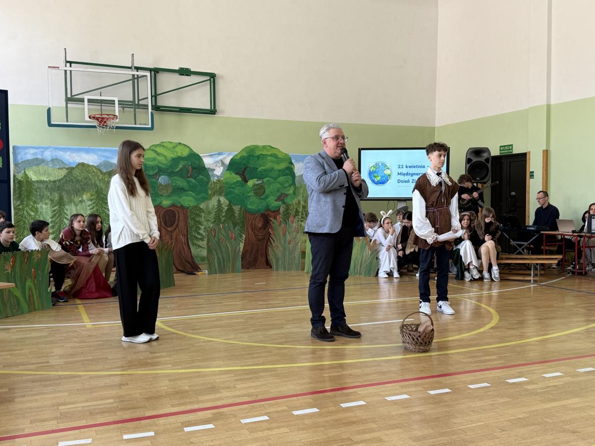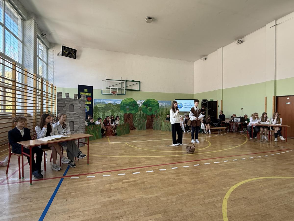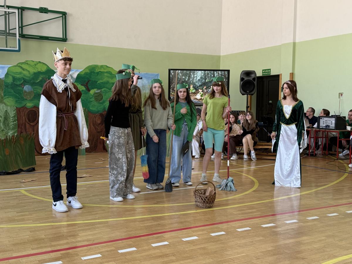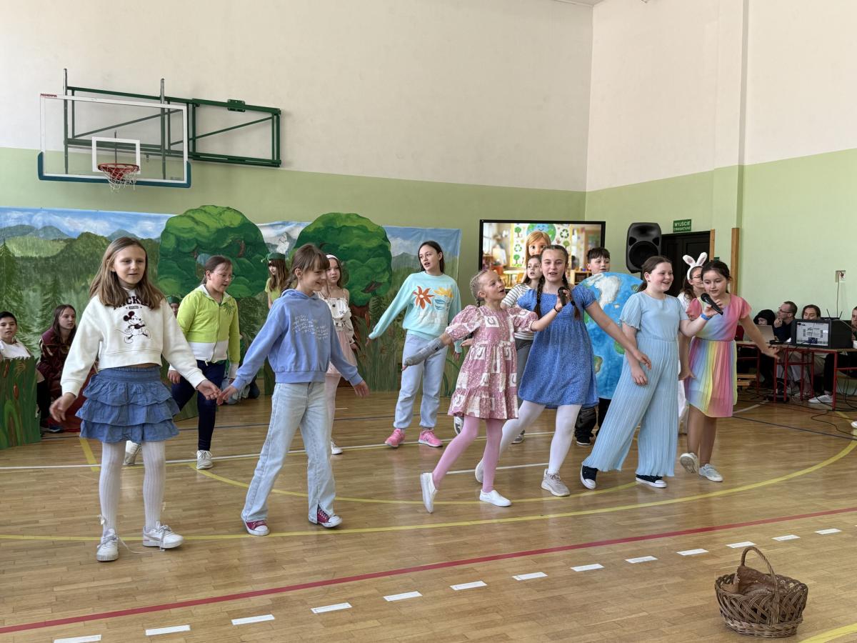 Z okazji Międzynarodowego Dnia Ziemi wzięliśmy udział w apelu, podczas którego przypomnieliśmy sobie najważniejsze informacje o tym wyjątkowym dniu oraz o tym, jak dbać o środowisko. Szczególnym punktem programu było przedstawienie opowiadające o nowych przygodach Królewny Śmieszki i Ekoludków. Widowisko w ciekawy, zabawny i pouczający sposób pokazało, jak ważna jest troska o naszą planetę i codzienne wybory, które mają wpływ na jej przyszłość.