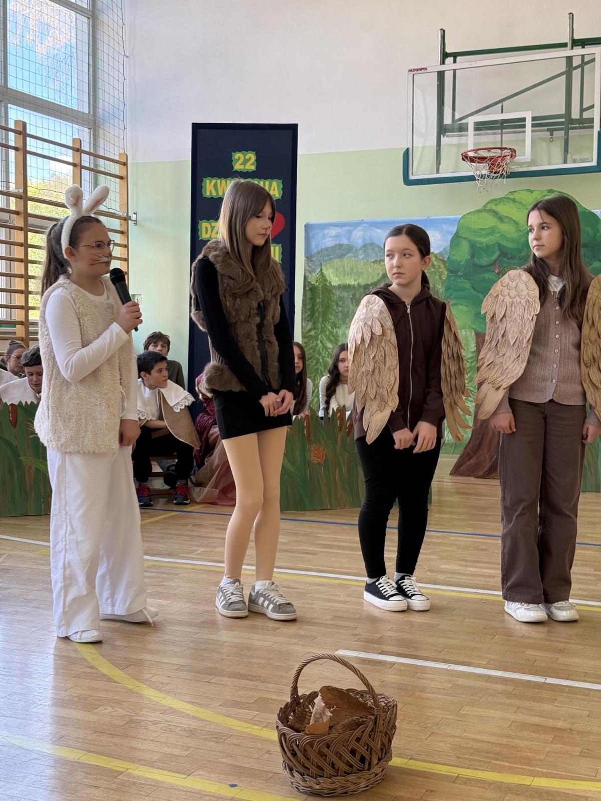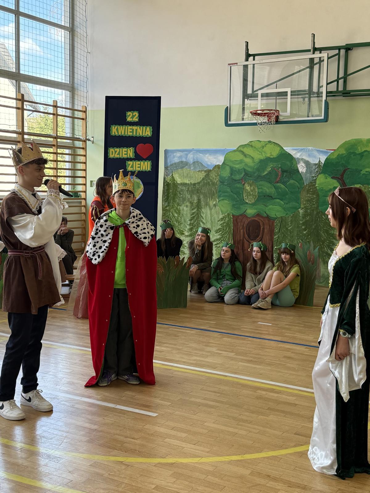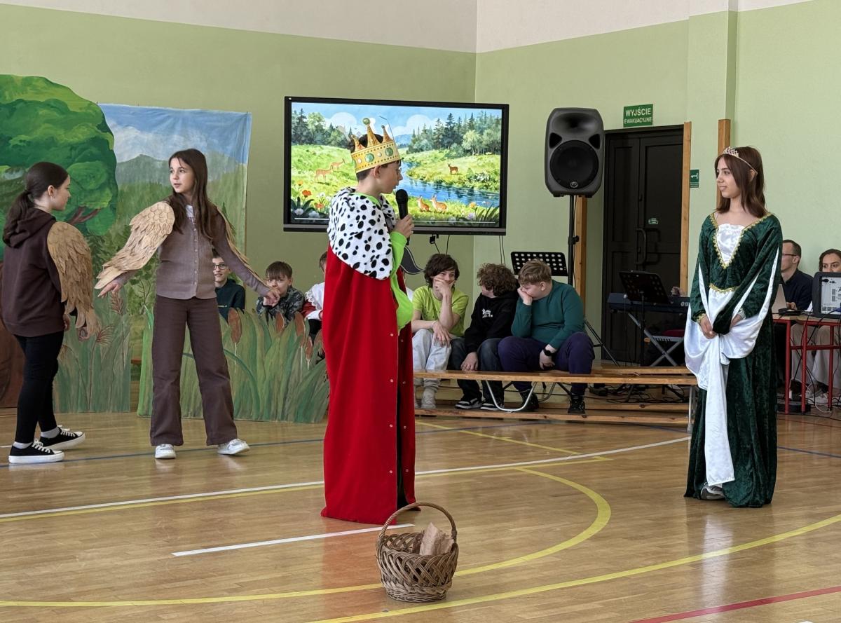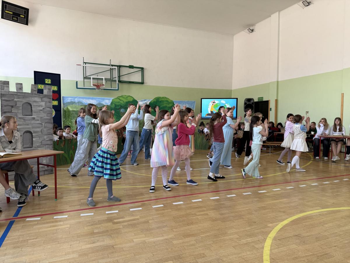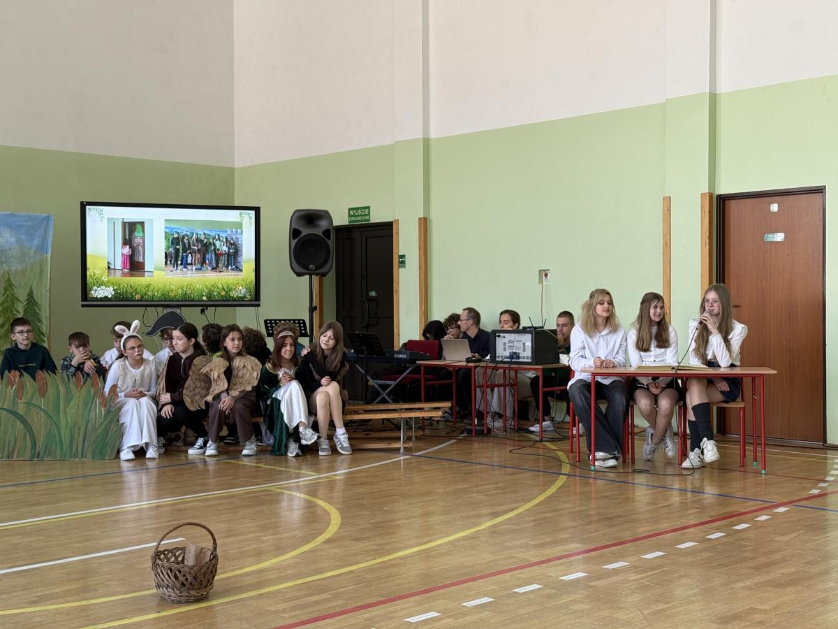 Z okazji Międzynarodowego Dnia Ziemi wzięliśmy udział w apelu, podczas którego przypomnieliśmy sobie najważniejsze informacje o tym wyjątkowym dniu oraz o tym, jak dbać o środowisko. Szczególnym punktem programu było przedstawienie opowiadające o nowych przygodach Królewny Śmieszki i Ekoludków. Widowisko w ciekawy, zabawny i pouczający sposób pokazało, jak ważna jest troska o naszą planetę i codzienne wybory, które mają wpływ na jej przyszłość.