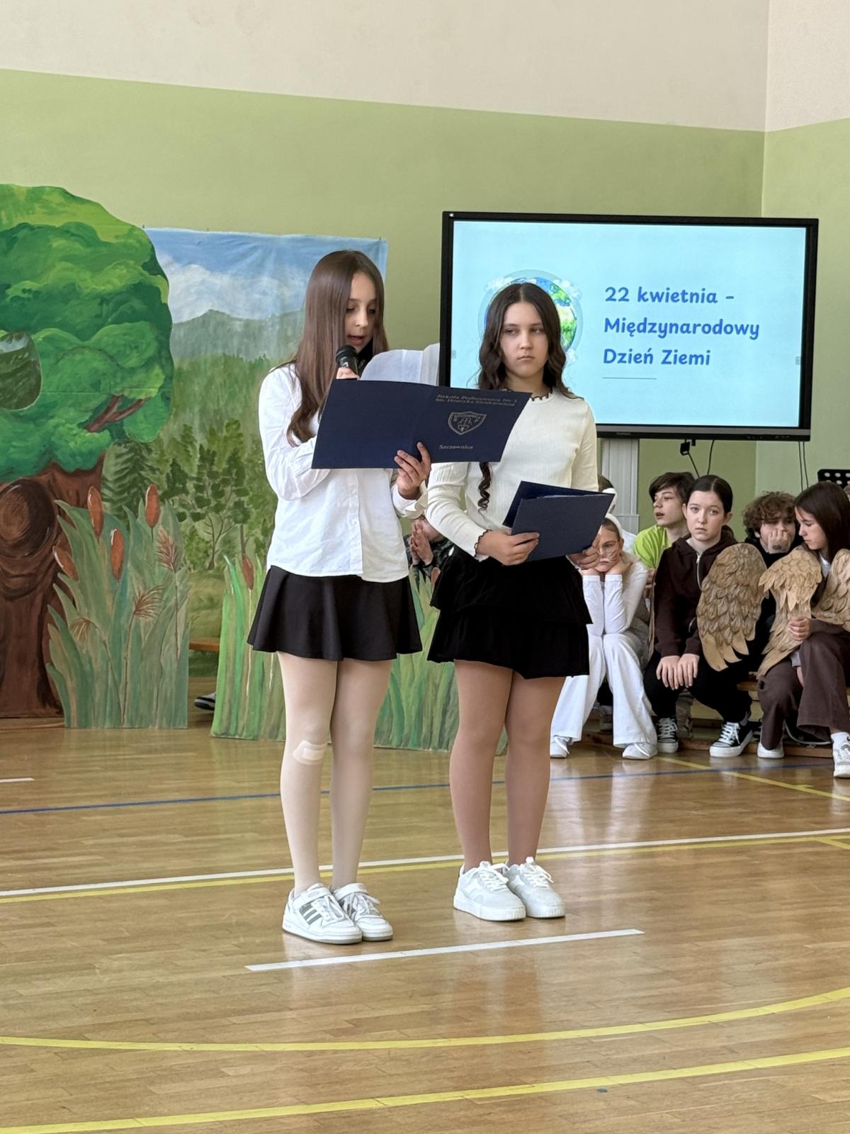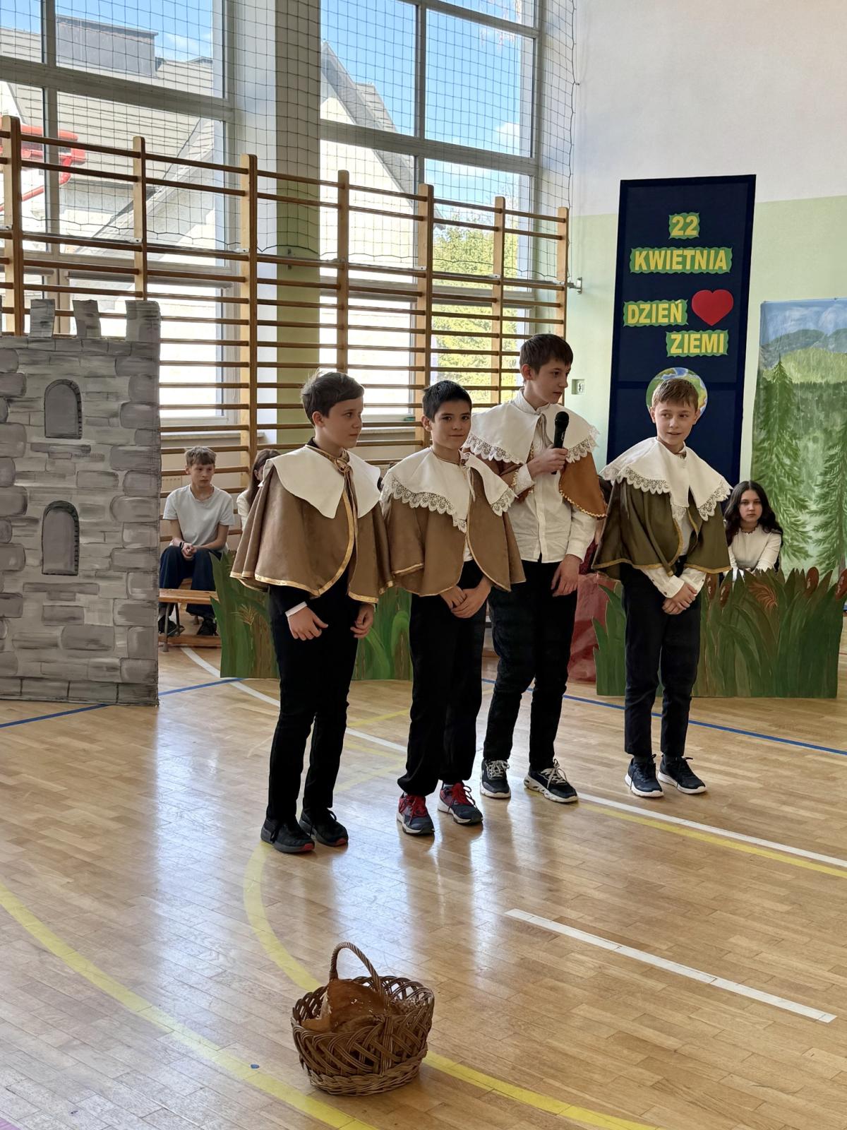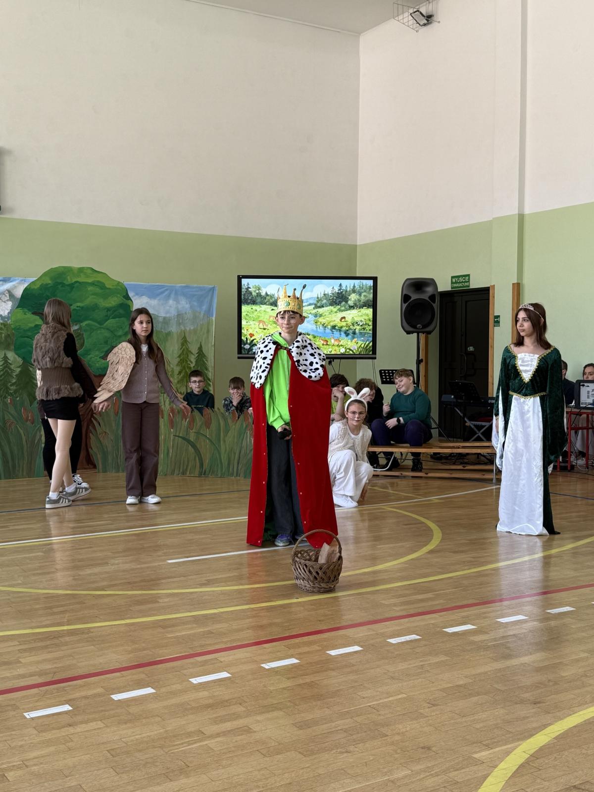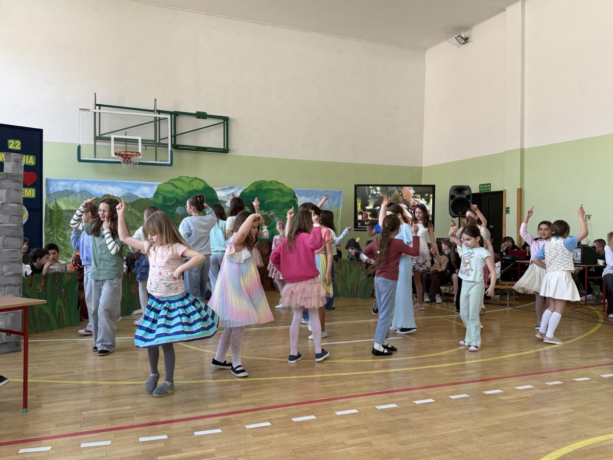 Z okazji Międzynarodowego Dnia Ziemi wzięliśmy udział w apelu, podczas którego przypomnieliśmy sobie najważniejsze informacje o tym wyjątkowym dniu oraz o tym, jak dbać o środowisko. Szczególnym punktem programu było przedstawienie opowiadające o nowych przygodach Królewny Śmieszki i Ekoludków. Widowisko w ciekawy, zabawny i pouczający sposób pokazało, jak ważna jest troska o naszą planetę i codzienne wybory, które mają wpływ na jej przyszłość.